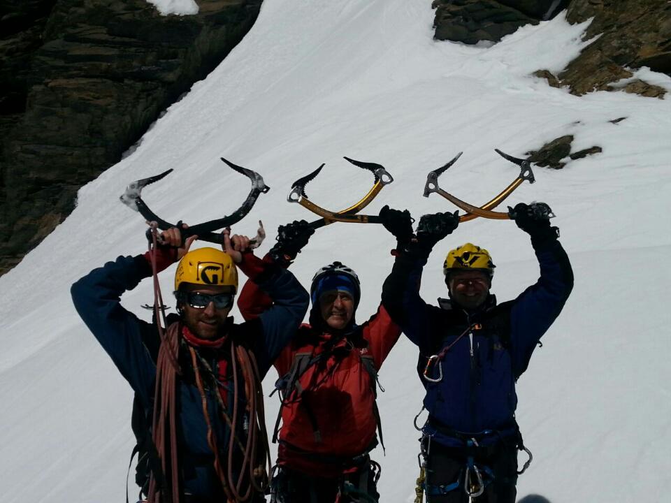 Partiti alle 3.30 da Valbondione, troviamo la parete in ottime condizioni x il rigelo notturno. La discesa dalla via normale non è stata banale…