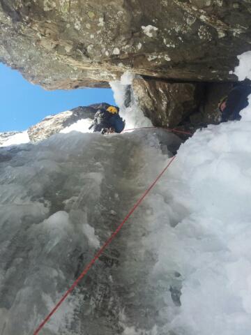 Cascata ancora in ottime condizioni con ghiaccio spaccoso nei primi 3 tiri mentre duro sulla candela finale. Ancora buona il "terzo canale del nido"