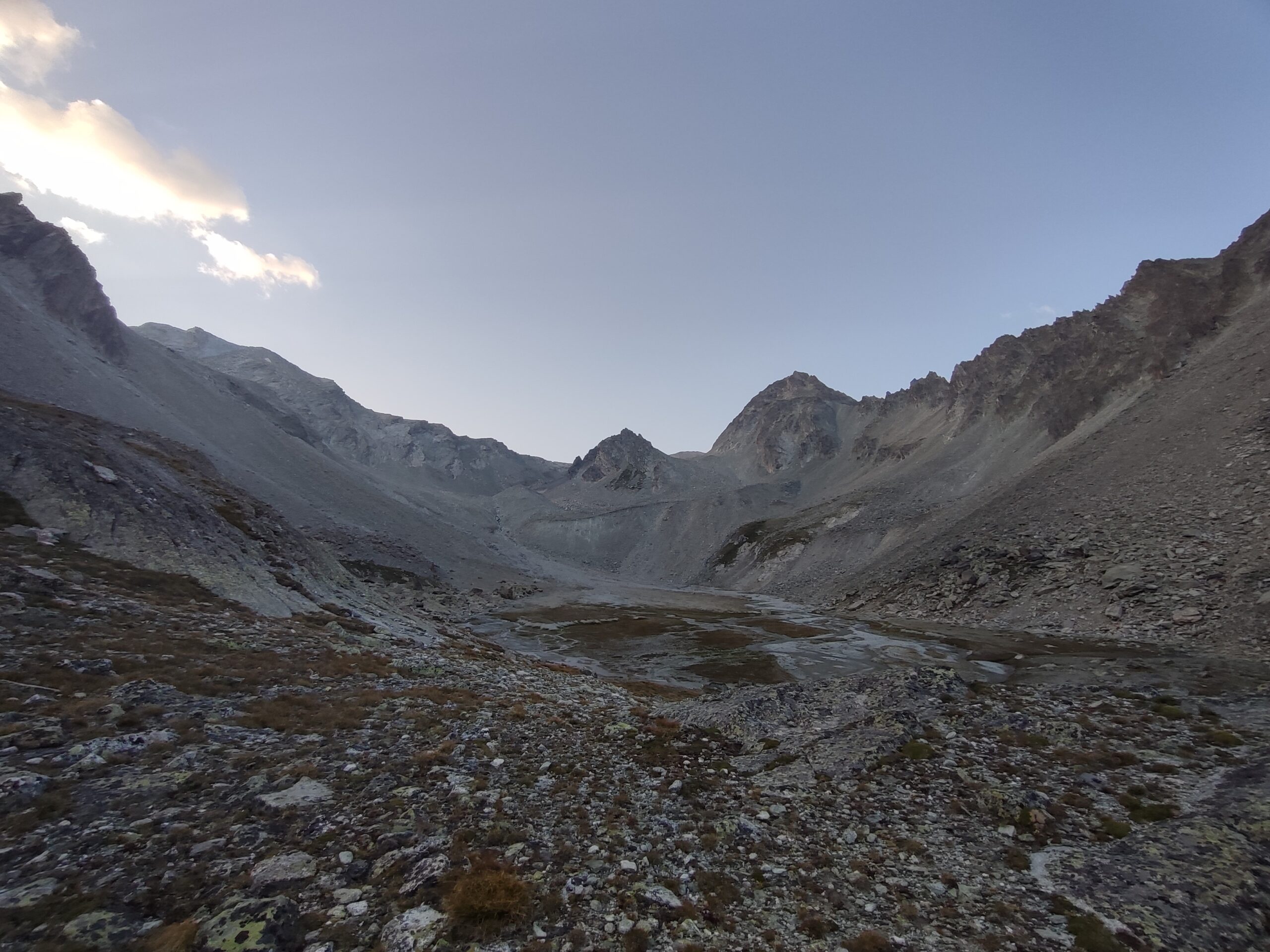 Sterrata un po' noiosa fino all'alpe Berrier (possibilità di tagli), sentiero semplice al rifugio poi per semplice pietraia ben segnata fino al bivacco. Bivacco in ordine…