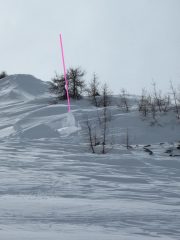 uscendo dal bosco si notano consistenti cornici genearate del vento di ONO subito dopo l'ultima nevicata una settantina di metri sotto la cima c'è la possibilità…