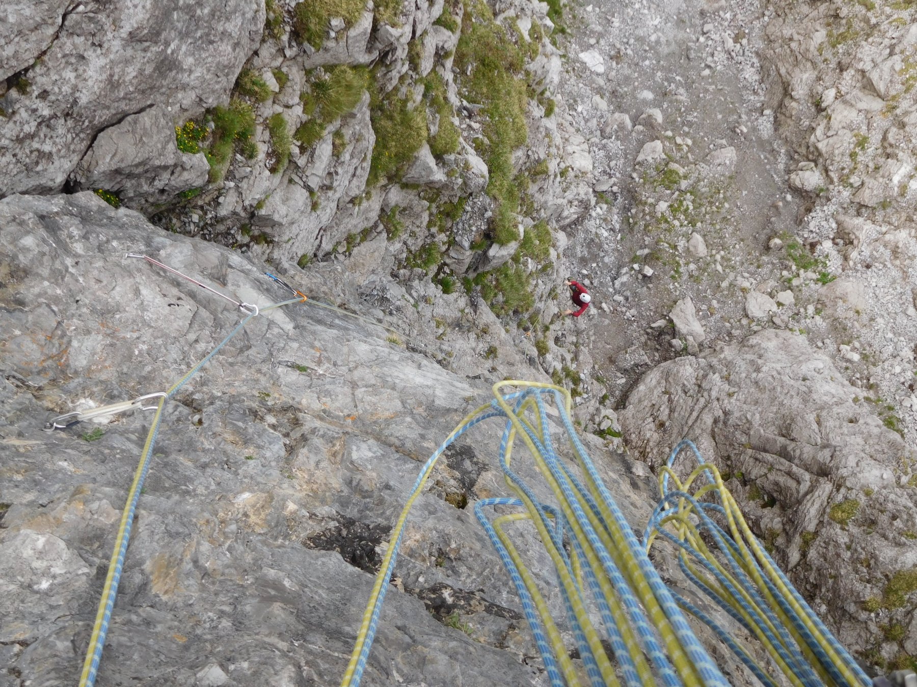 | mccandless | Il panorama in cui si svolge l'arrampicata (ben visibili il Monte Nero e, in lontananza, il Becco Meriodionale della Tribolazione). | mccandless | La prima lunghezza. | mccandless | Gli ultimi metri della L5.