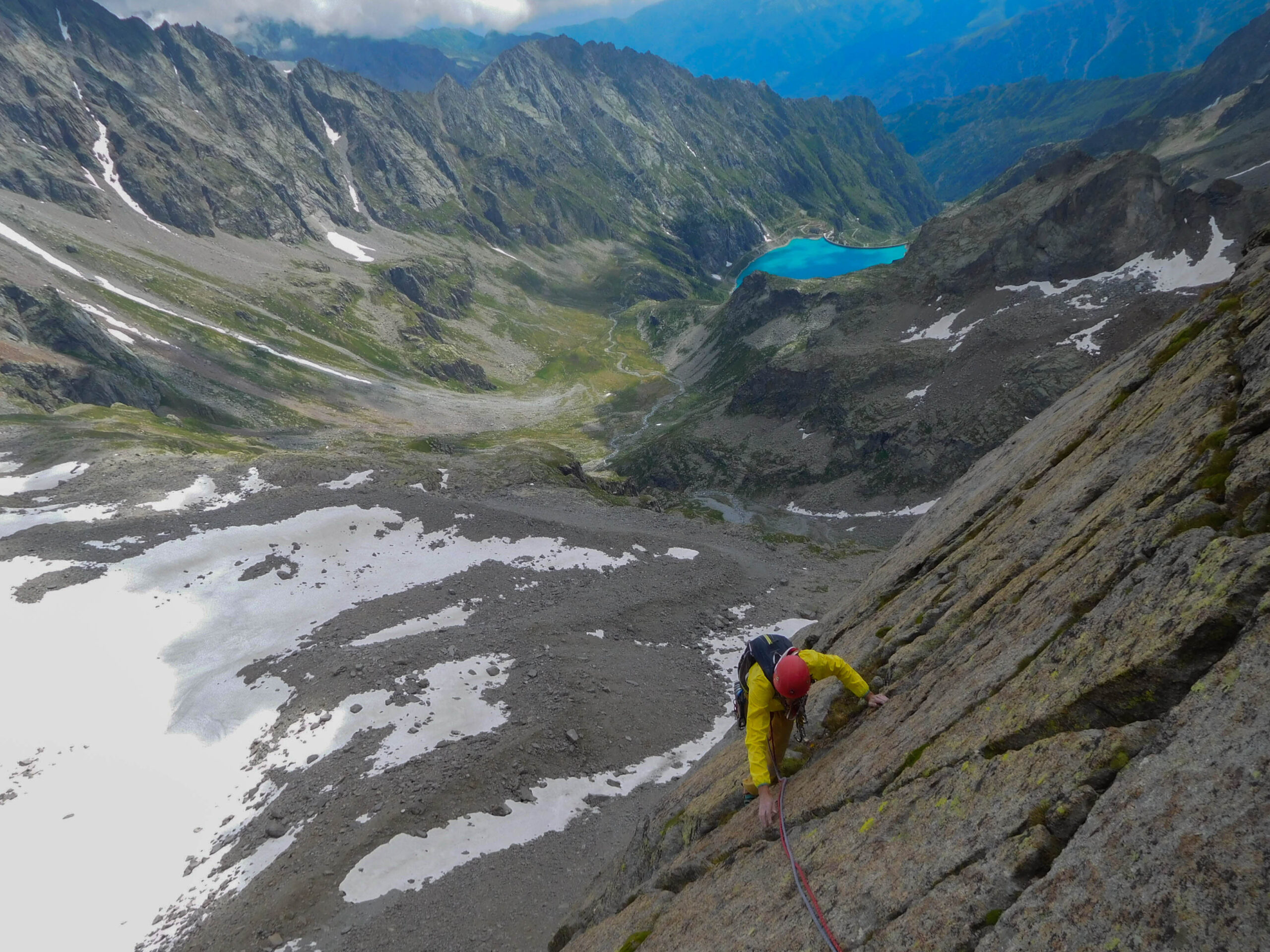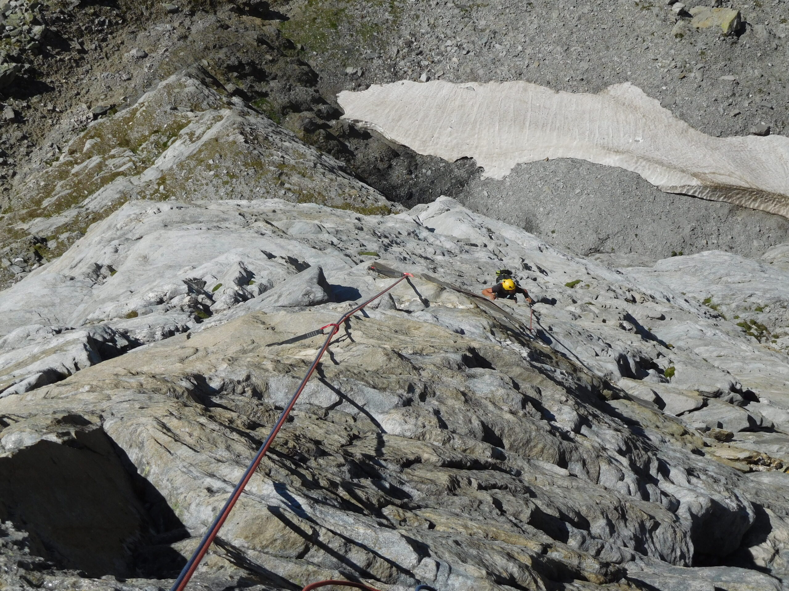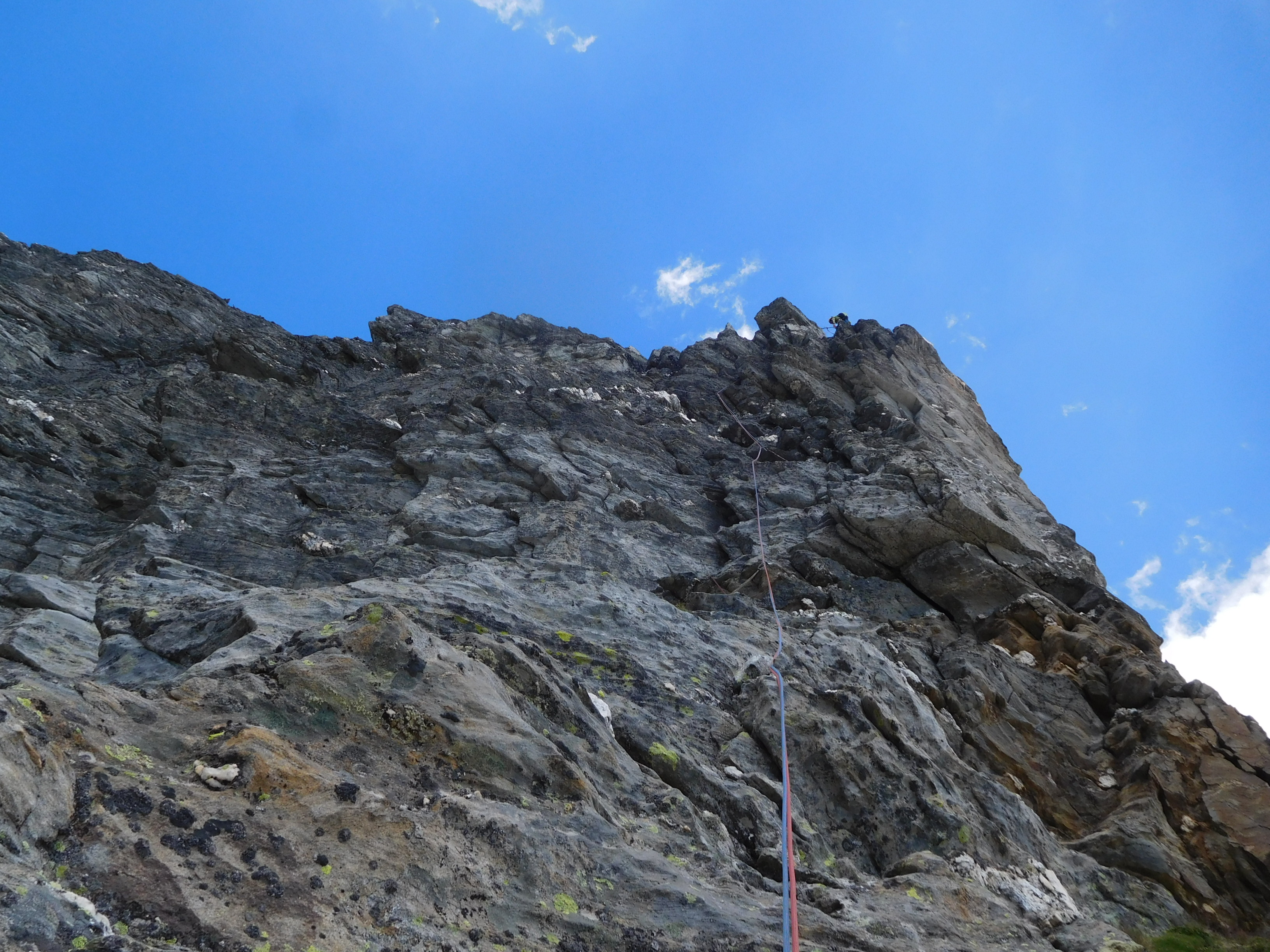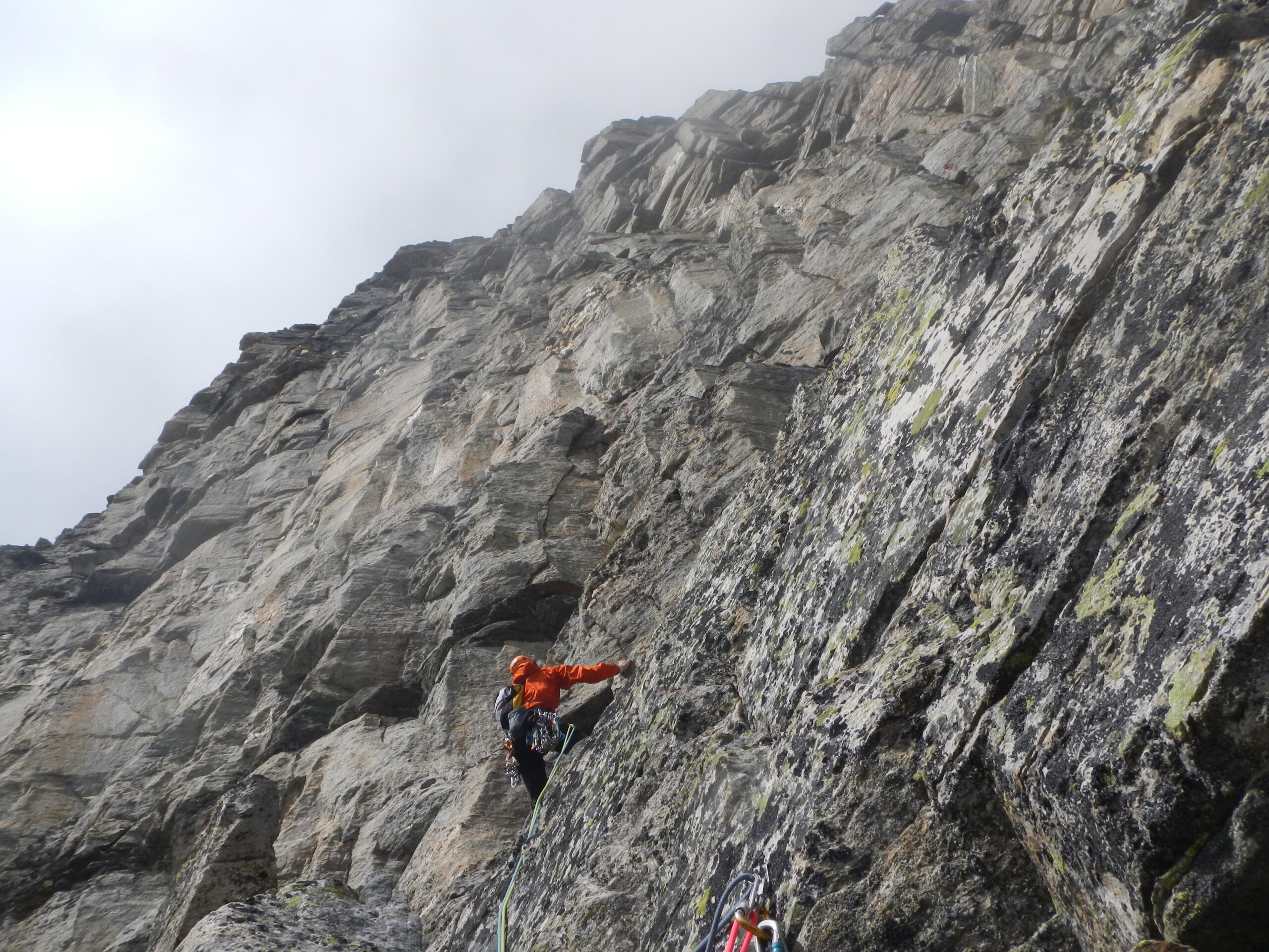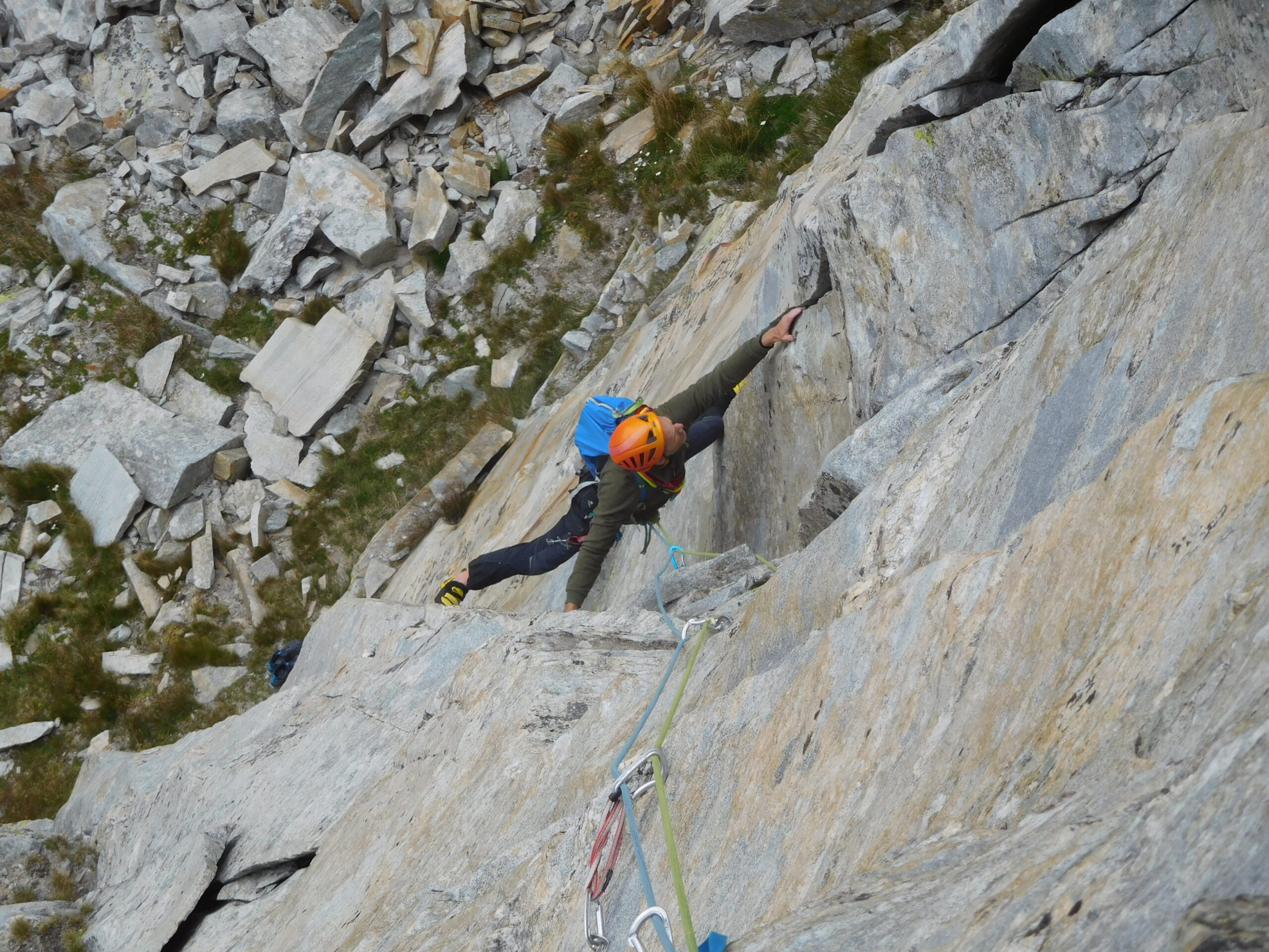 | mccandless | Gli ultimi metri della L3. | mccandless | L5, la prima lunghezza dopo lo zoccolo basale. | mccandless | L9, in corrispondenza della lama instabile.