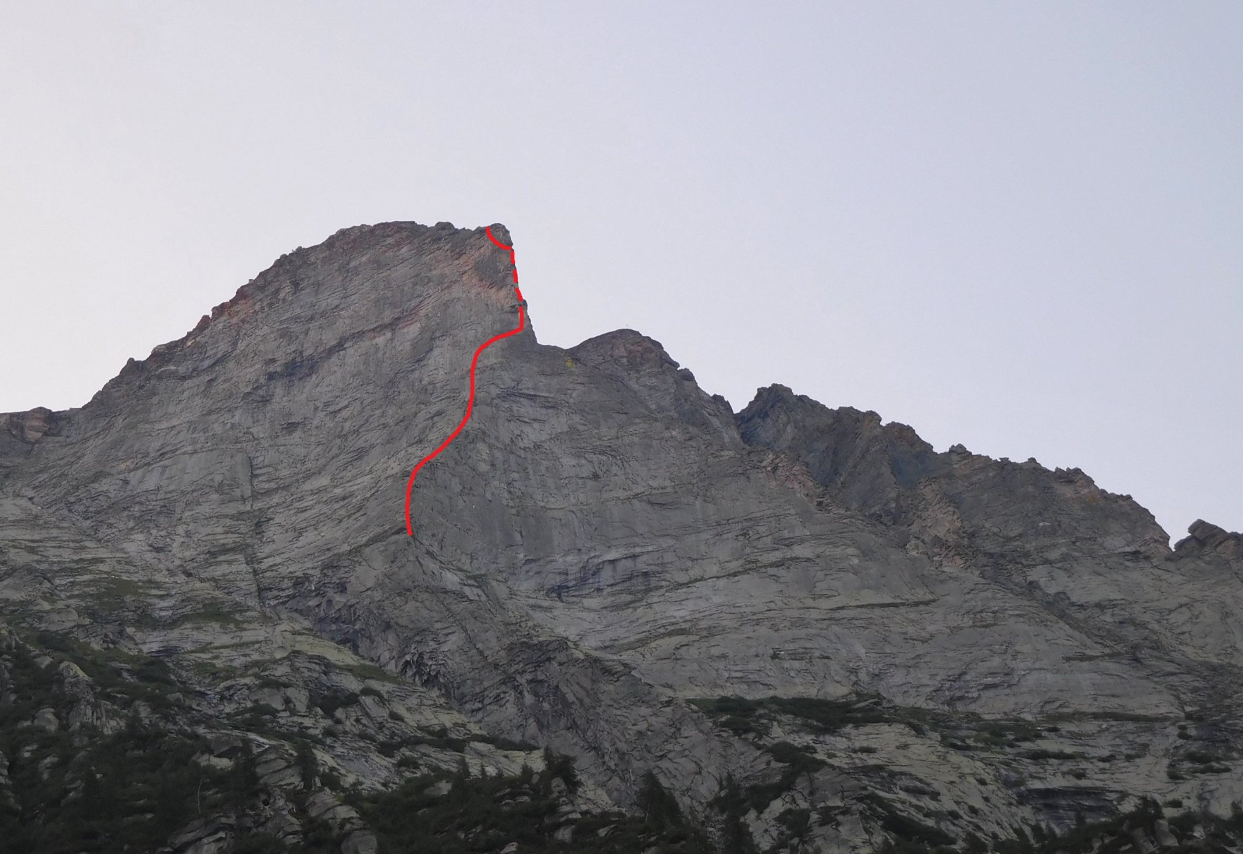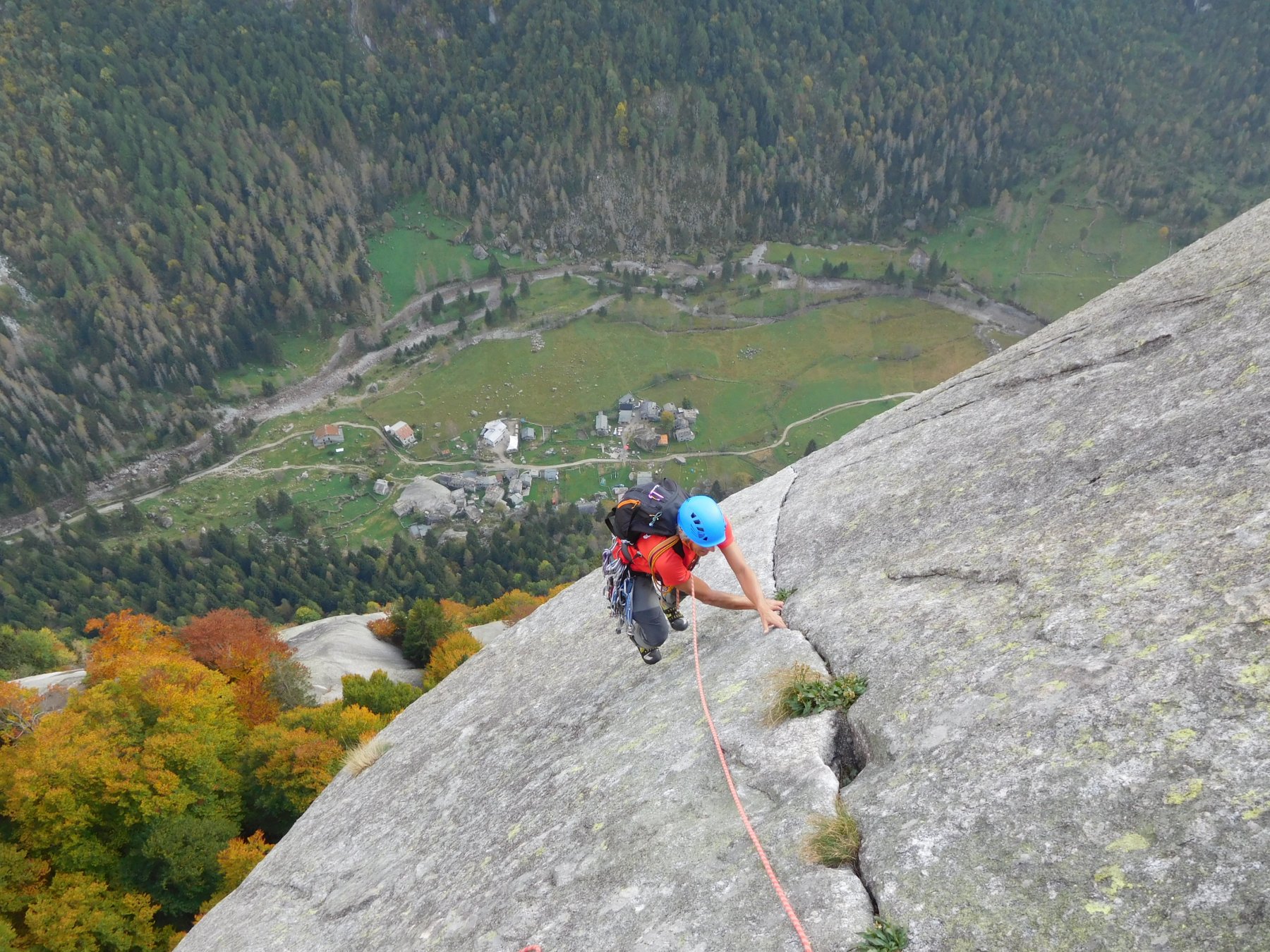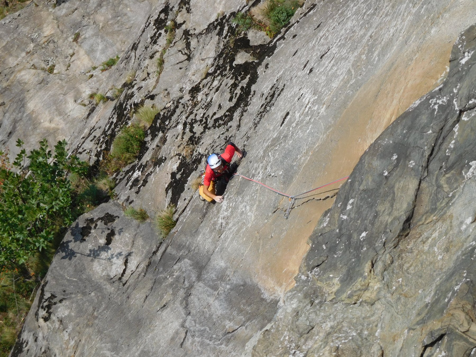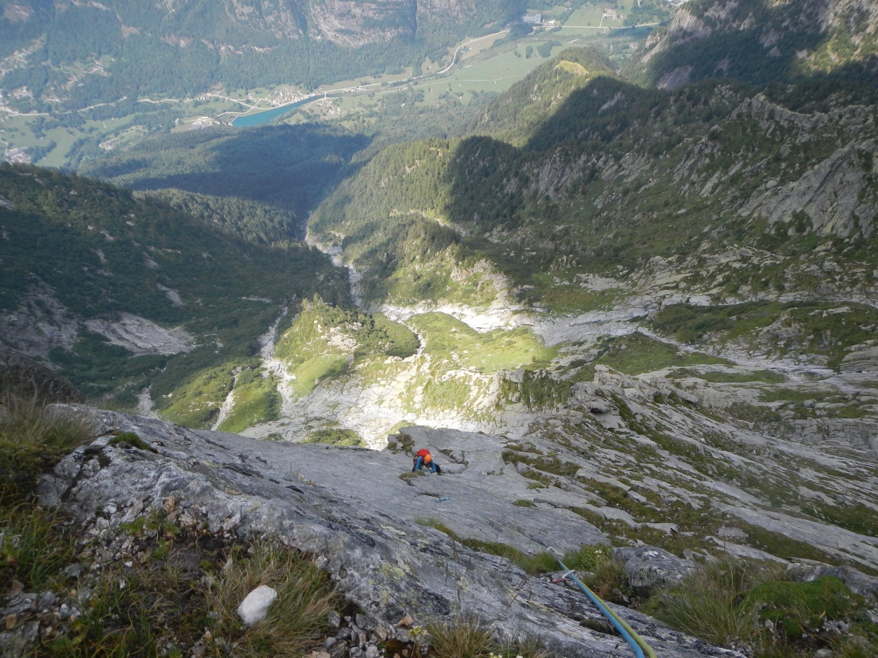 | mccandless | La linea (approssimativa) seguita dalla via. | mccandless | La cascatella dopo la quale abbiamo abbandonato il sentiero in traverso, iniziando a salire verso la Pioda. | mccandless | L'attacco della via. | mccandless | Una delle facili lunghezze centrali. | mccandless | La L7 con la valle sullo sfondo. | mccandless | La fessura di L9 vista dalla sosta. | mccandless | L'ultima parte della L10. | mccandless | Il colletto da cui si imbocca il sentiero di discesa.