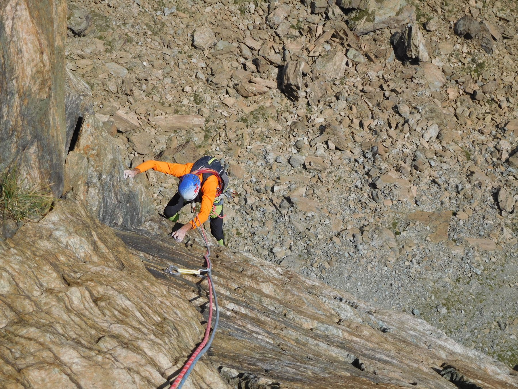 | mccandless | La spettacolare L2 da percorrere in dulfer! | mccandless | Il rifugio e la parete del Gross Bielenhorn (in ombra sullo sfondo a destra). | mccandless | Il toro di Uri disegnato in corrispondenza della S0. | mccandless | La parete del Gross Bielenhorn illuminata dal sole pomeridiano. | mccandless | La parte iniziale di L5: verso il delta di Venere. | mccandless | La L2 dopo il tratto di fessura strapiombante. | mccandless | La L2 vista dalla sosta. | mccandless | Il traverso verso la sosta della L4. | mccandless | L'esposizione della L4. | mccandless | La L1, piuttosto impegnativa a freddo. | mccandless | Poco prima del passo chiave di L5 (dalla sosta intermedia) | mccandless | Gli ultimi passi della L4 | mccandless | La parte finale della L2