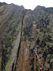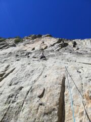 Decisamente una bella via!I trasferimenti sono corti e non danno fastidio,i tiri tutti meritevoli,sui tiri più facili la chiodatura è distanziata ma si può integrare…