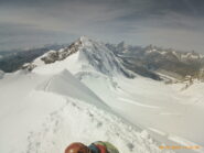 Buone le condizioni grazie al rigelo notturno, diversi crepacci aperti dietro la Gnifetti.
