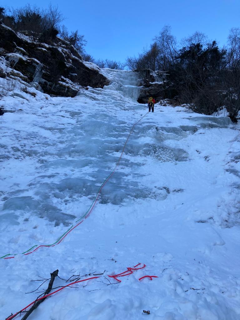 La cascata è salibile, noi abbiamo fatto i primi tre tiri, si deve passare sui lati perché al centro scorre acqua. Ghiaccio in prevalenza ottimo,…