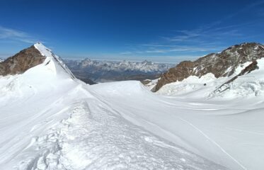 Salita in solitaria da Indren, ghiacciaio in condizioni perfette, con rigelo e neve portante anche al ritorno.
