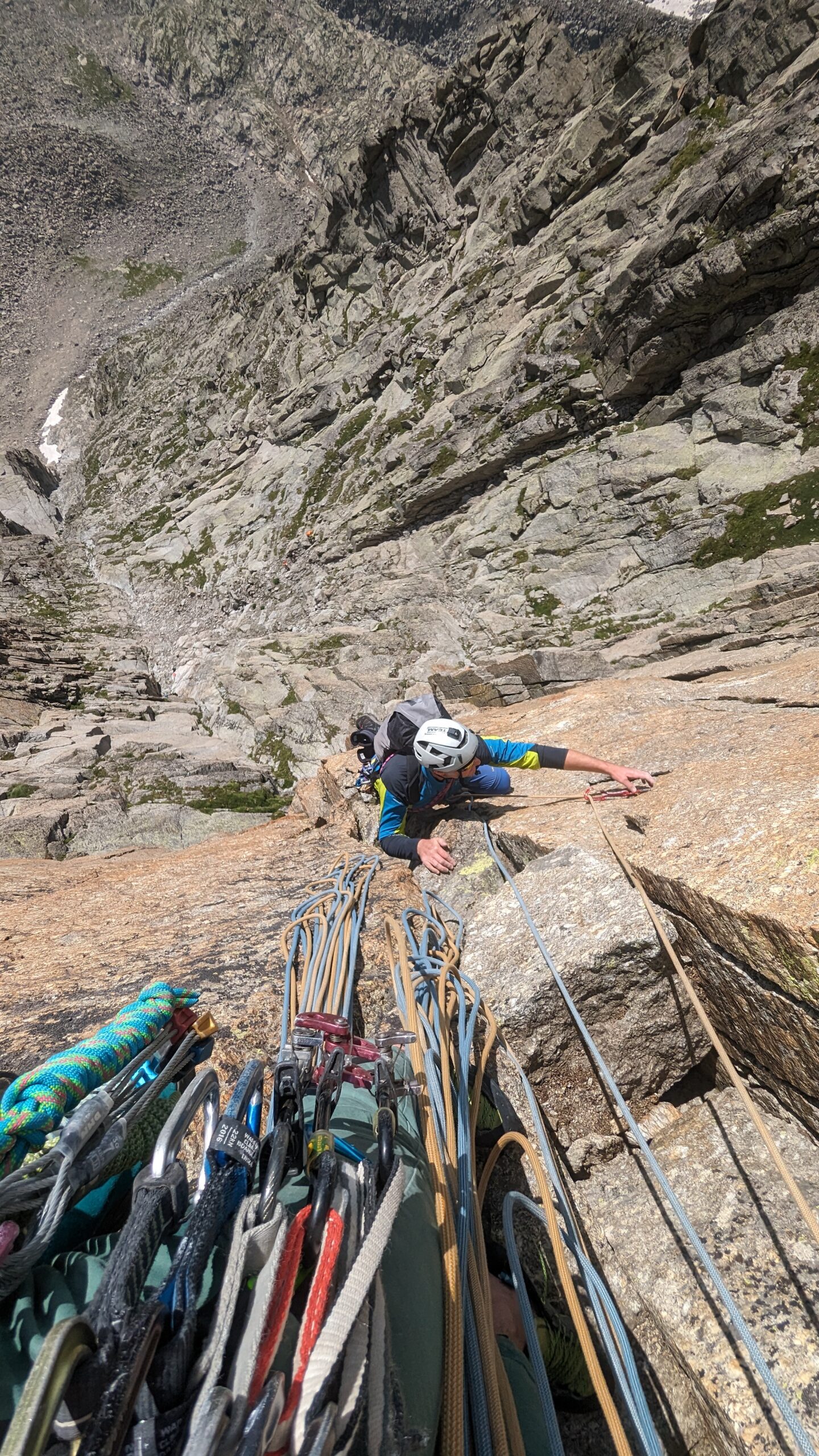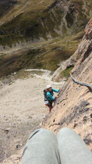 Per raggiungere la cengia abbiamo fatto i 4 tiri di espirit libre. Opinioni: primo tiro il più bello, chiodatura distanziata sui 6a. L4 è il…