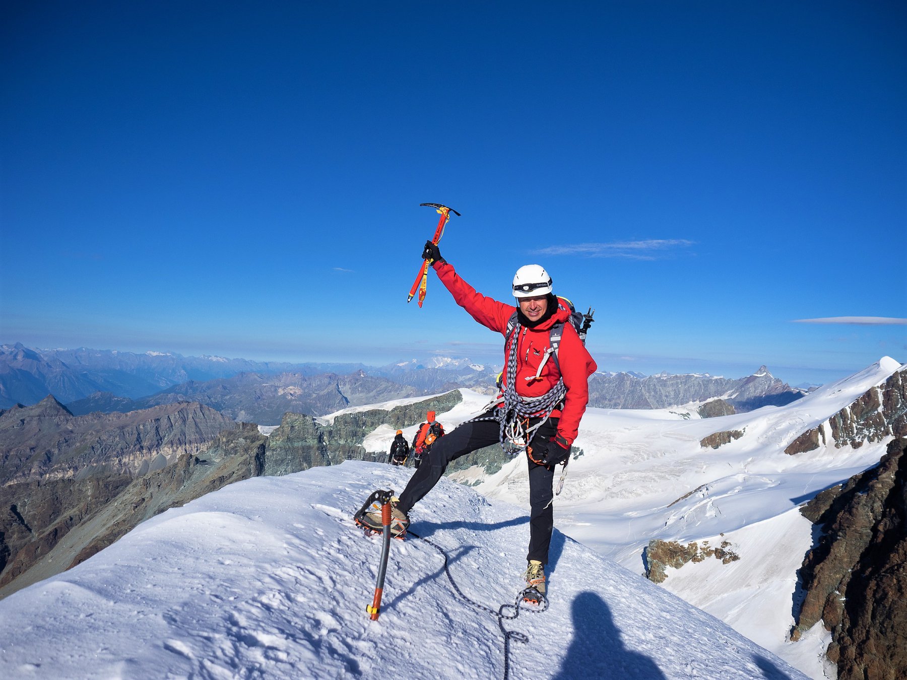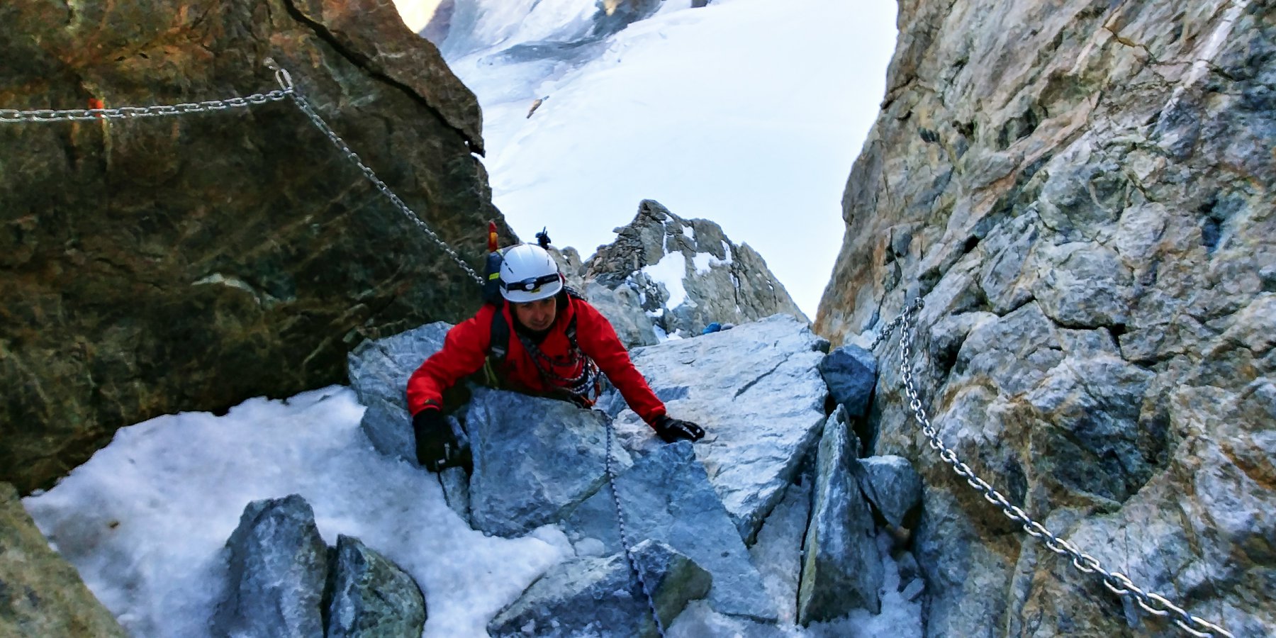 | michelebertoli | Il canalino a 45° percorso in salita | michelebertoli | Sbucando alla sommità del camino | michelebertoli | Cresta finale dalla madonnina | michelebertoli | In vetta! | michelebertoli | Discesa in doppia dalla madonnina alla base superiore del camino | michelebertoli | Discesa in doppia nel camino ed il traverso aereo attrezzato con catene | michelebertoli | Polluce (sulla dx) visto dal rifugio Guide d'Ayas e condizioni attuali del ghiacciaio | michelebertoli | La Vallée Blanche, zona crepacciata da attraversare | michelebertoli | Vallée Blanche, crepacci | michelebertoli | Cresta finale per l'Aiguille du Midi