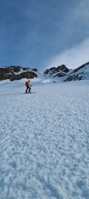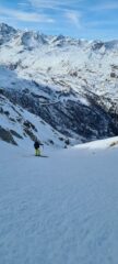 Si calzano gli sci con neve appena sufficiente alla piana del Devero, poi mentre si sale in Val Buscagna la quantità per fortuna aumenta decisamente.…