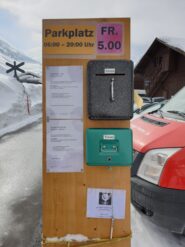 Ottima traccia di salita fino in vetta. Pendii "tritati" dagli innumerevoli passaggi ma ancora perfettamente sciabili. Parcheggio sempre a pagamento, 5 franchi/giorno.