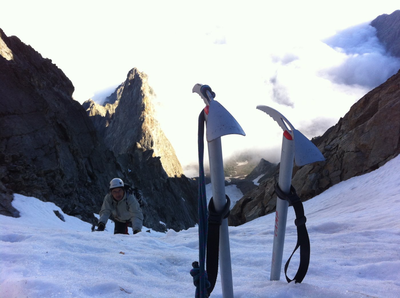 | montanogia | ultimi passi nel canale | montanogia | Doppia | montanogia | mare di nuvole e sullo sfondo il Monviso | montanogia | La strettoia all'alteza degli isolotti | montanogia | Entrata nel canale alle prime luci | montanogia | La variante a sinistra dello Spigolo Manni | montanogia | Il tratto di 6a della variante