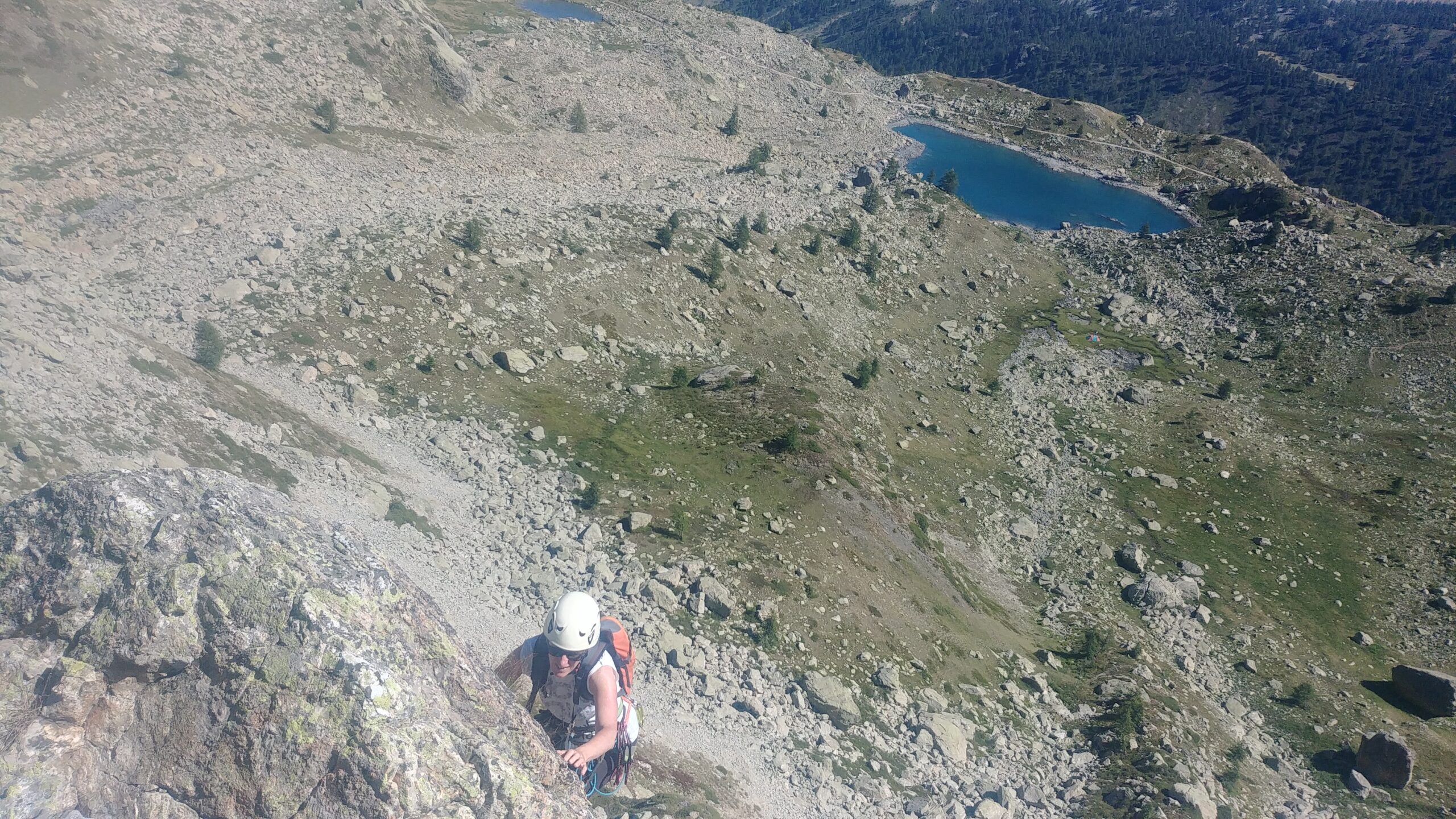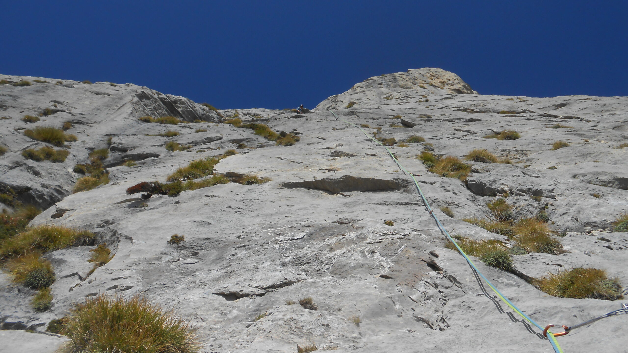Effettuata concatenando la parte inferiore di Esprit Libre. Molta gente sul Corno ma solo noi su Vecchi Lupi. La via mi è piaciuta molto. Spittatura…