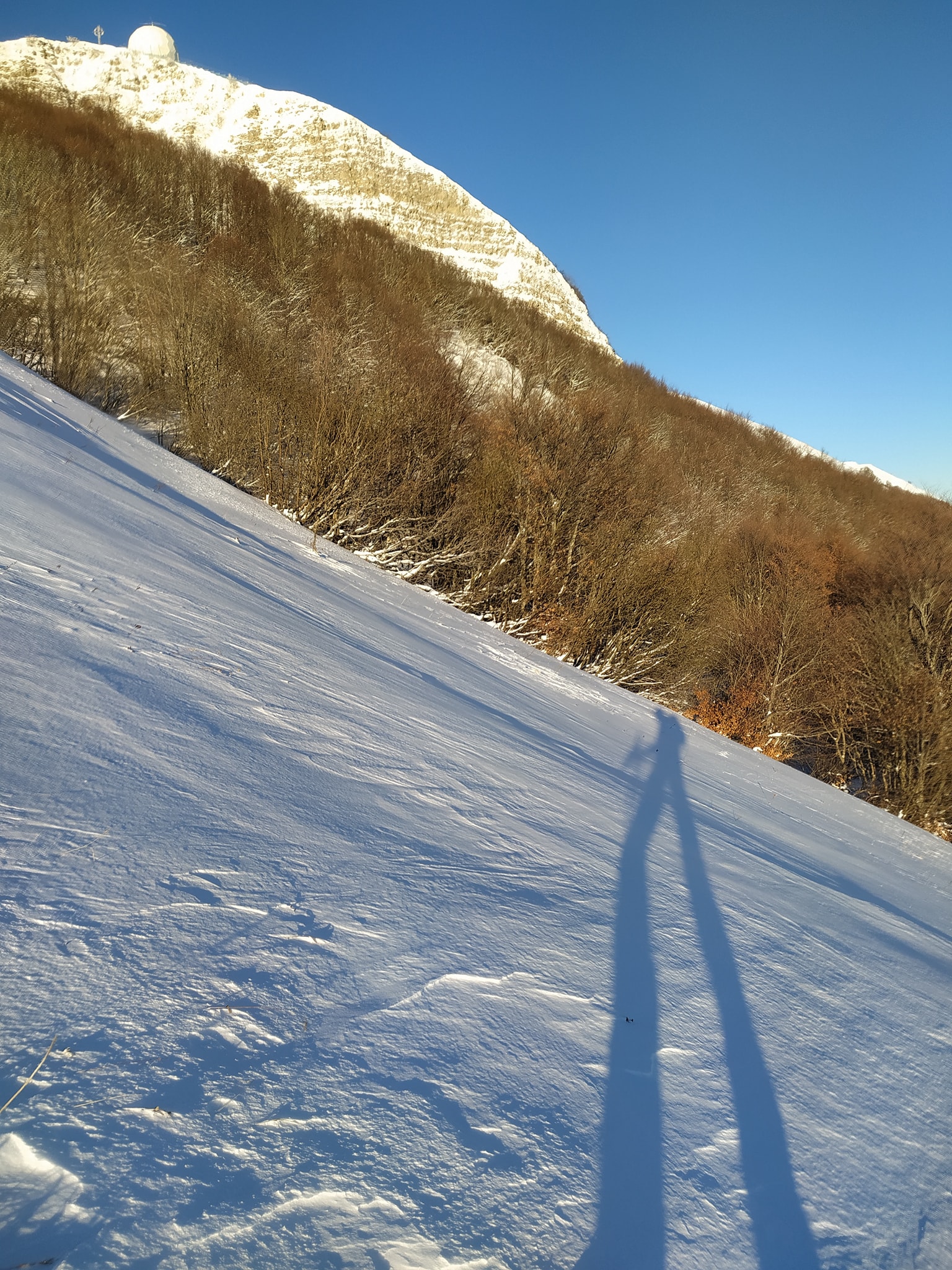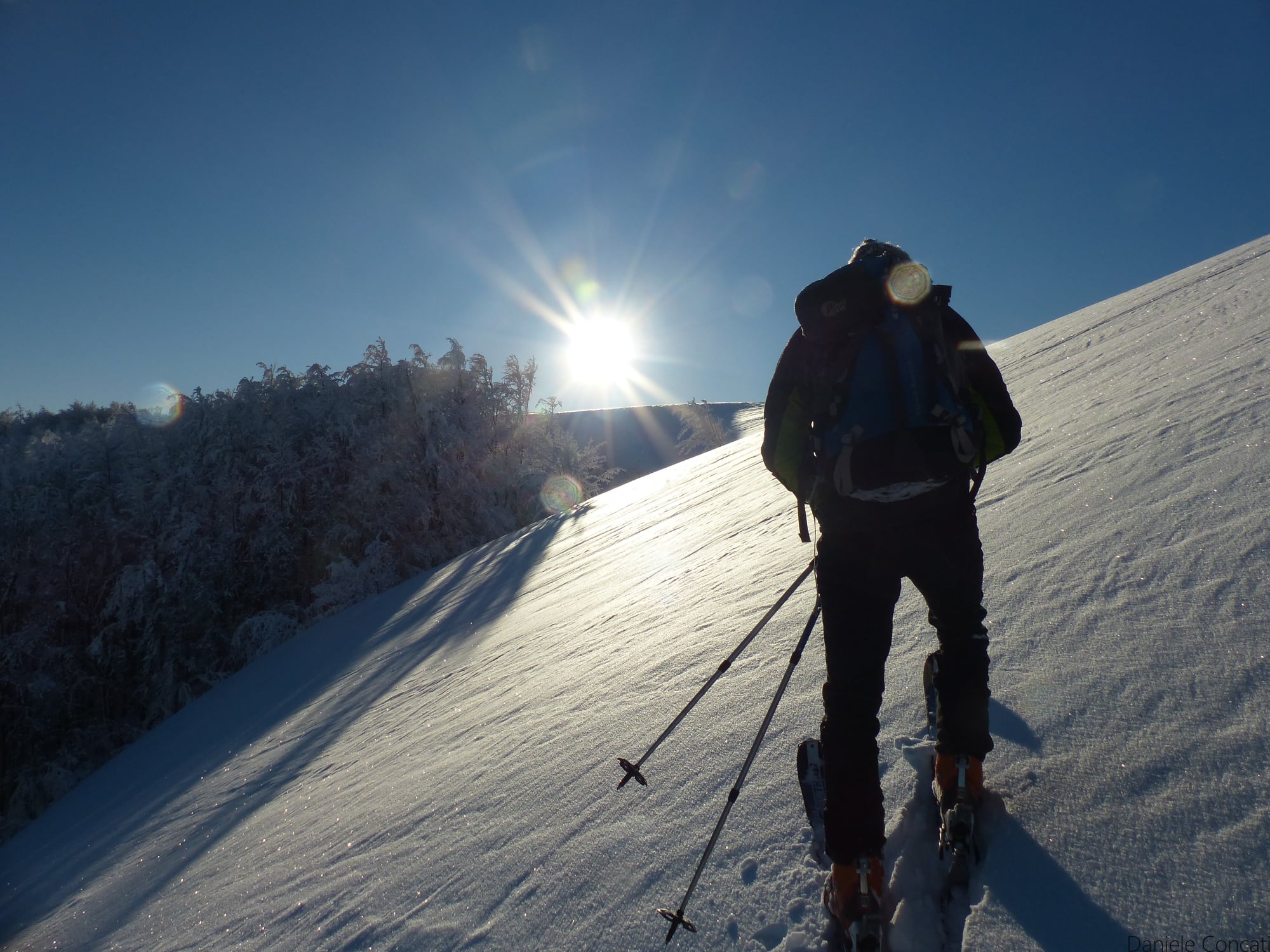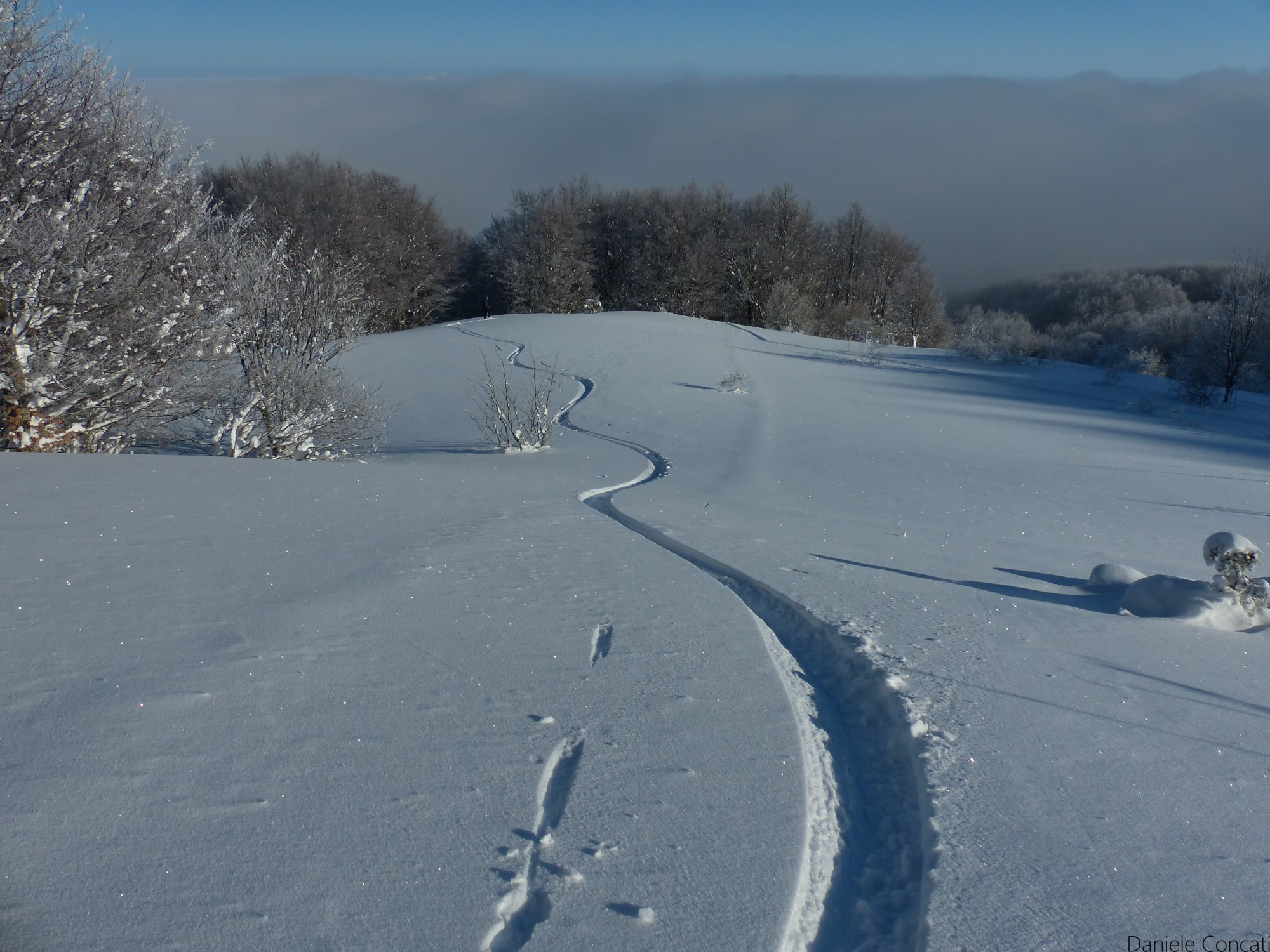 Gita perfetta, mediamente 130 cm di neve polverosa, temperatura sui -4 circa. Completamente sciabile, nessuna pietra copertura completa anche sulla cresta solitamente ventata. Traccia aperta dai prati…
