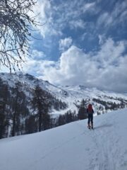 Una bella giornata, anche se nuvolosa, meglio del previsto. Stradina quasi tutta innevata con soli 3- 4 passaggi di pochi metri scoperti. Parte superiore sino…
