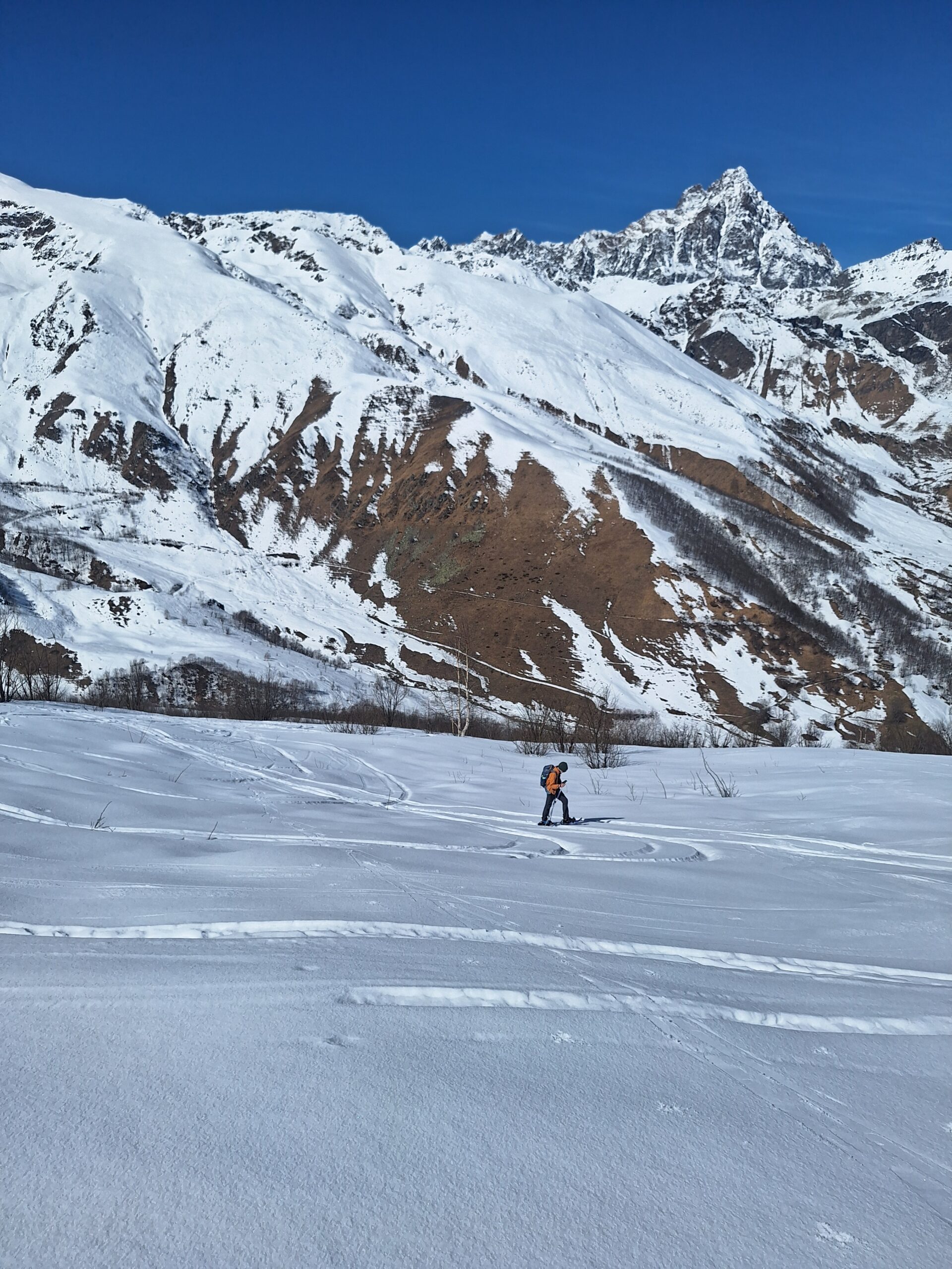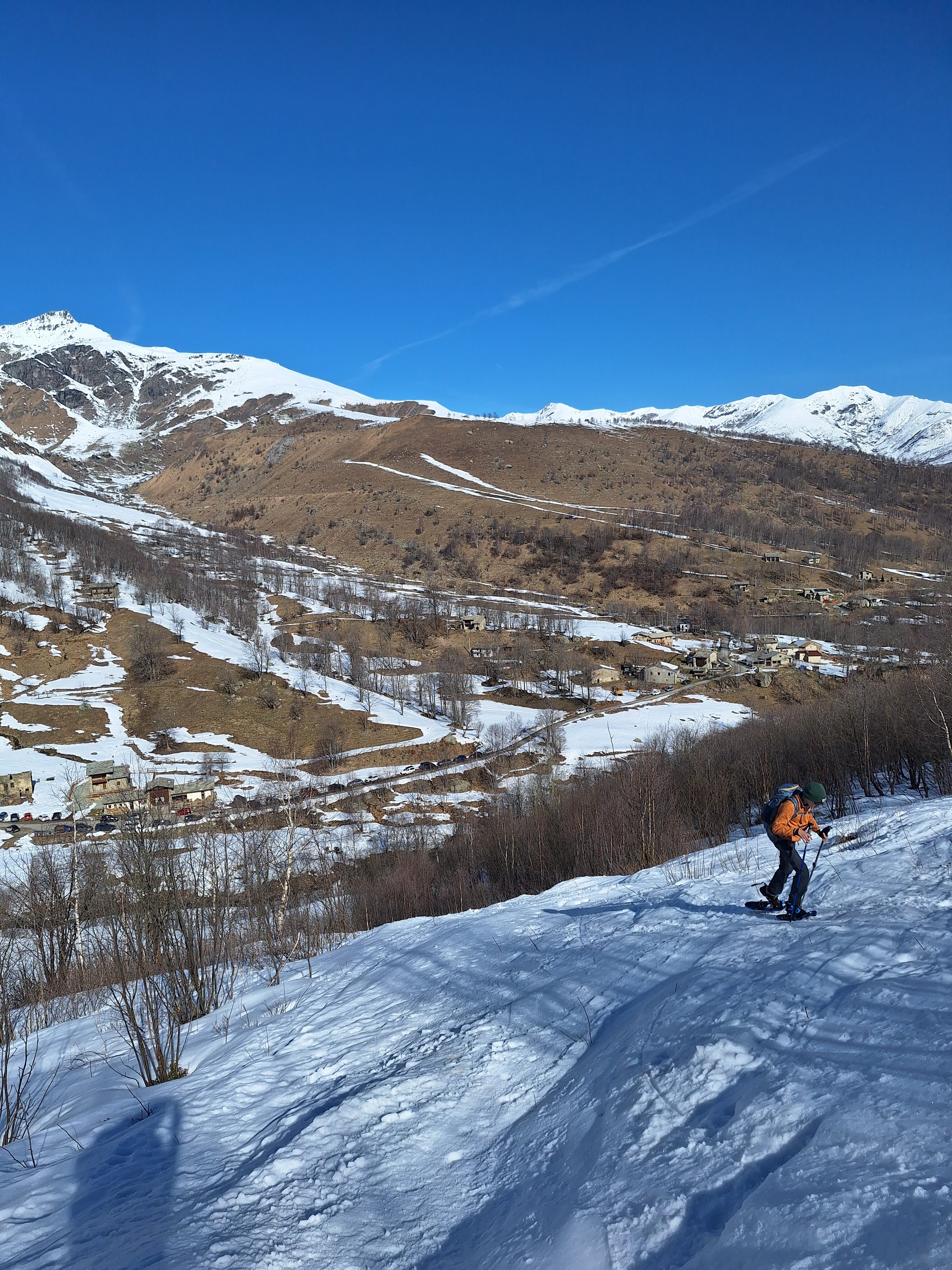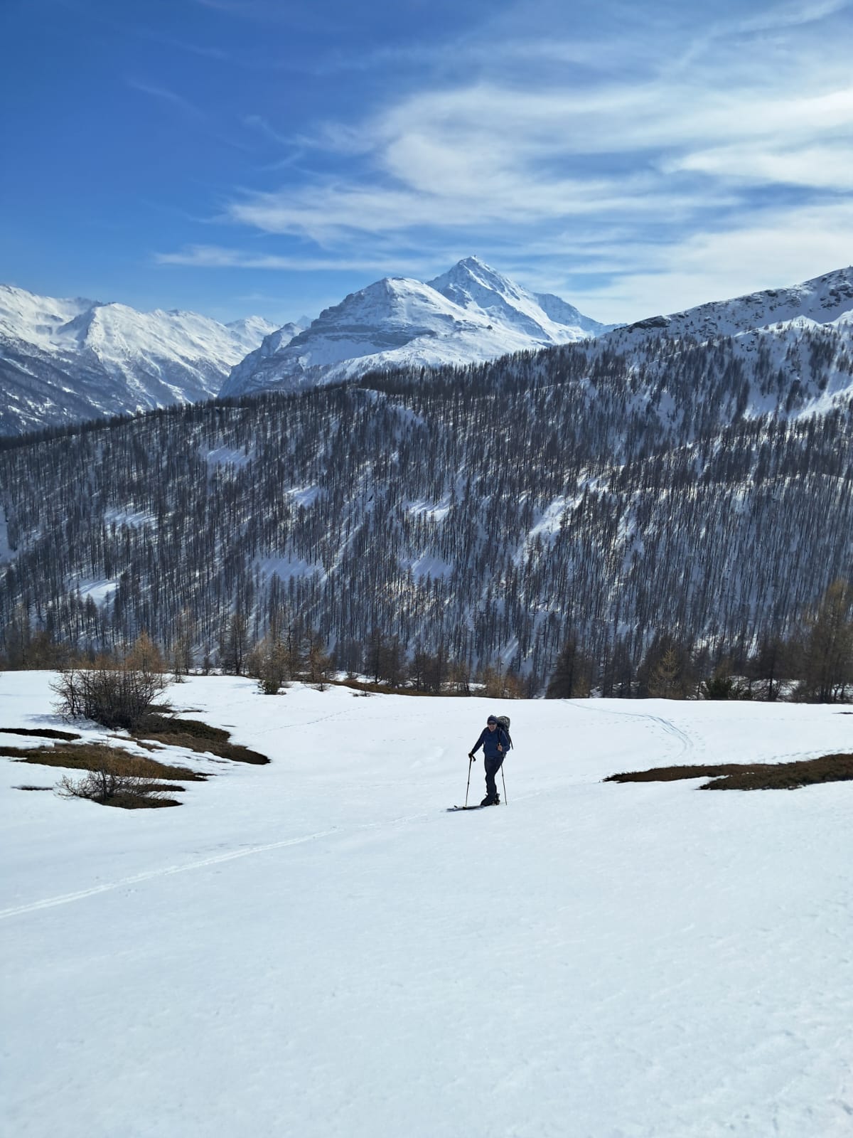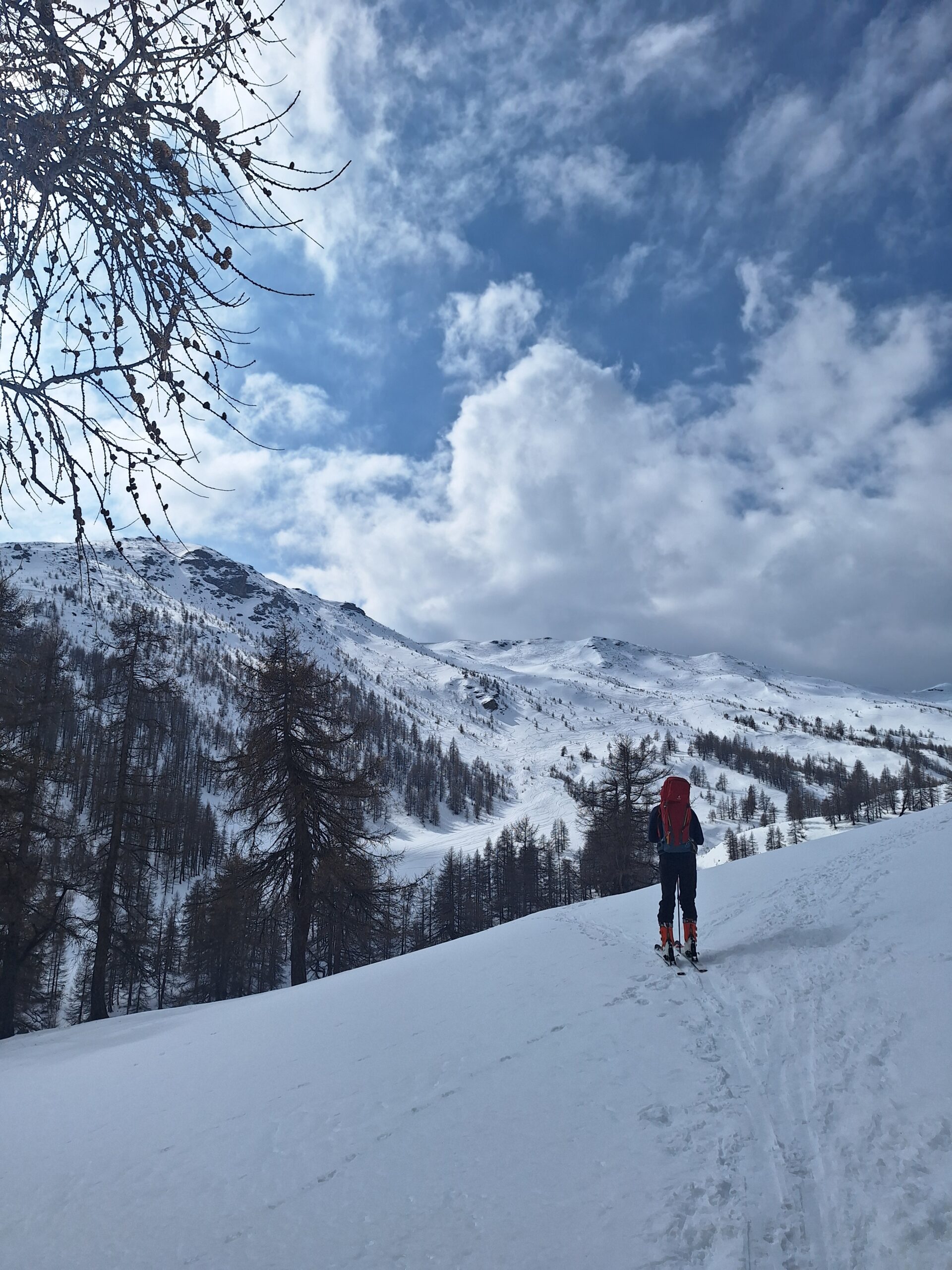 Abbiamo iniziato a salire con comodo verso le 10. La prima sezione ripida ancora con neve dura, mi ha fatto optare per i coltelli. Discesa dalla…