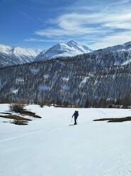 Partiamo con calma, arriviamo all'Alpe Bruns sulla stradina ancora abbastanza innevata. Nella parte superiore sino al colletto battiamo la traccia su lingue continue di neve, destreggiandoci…