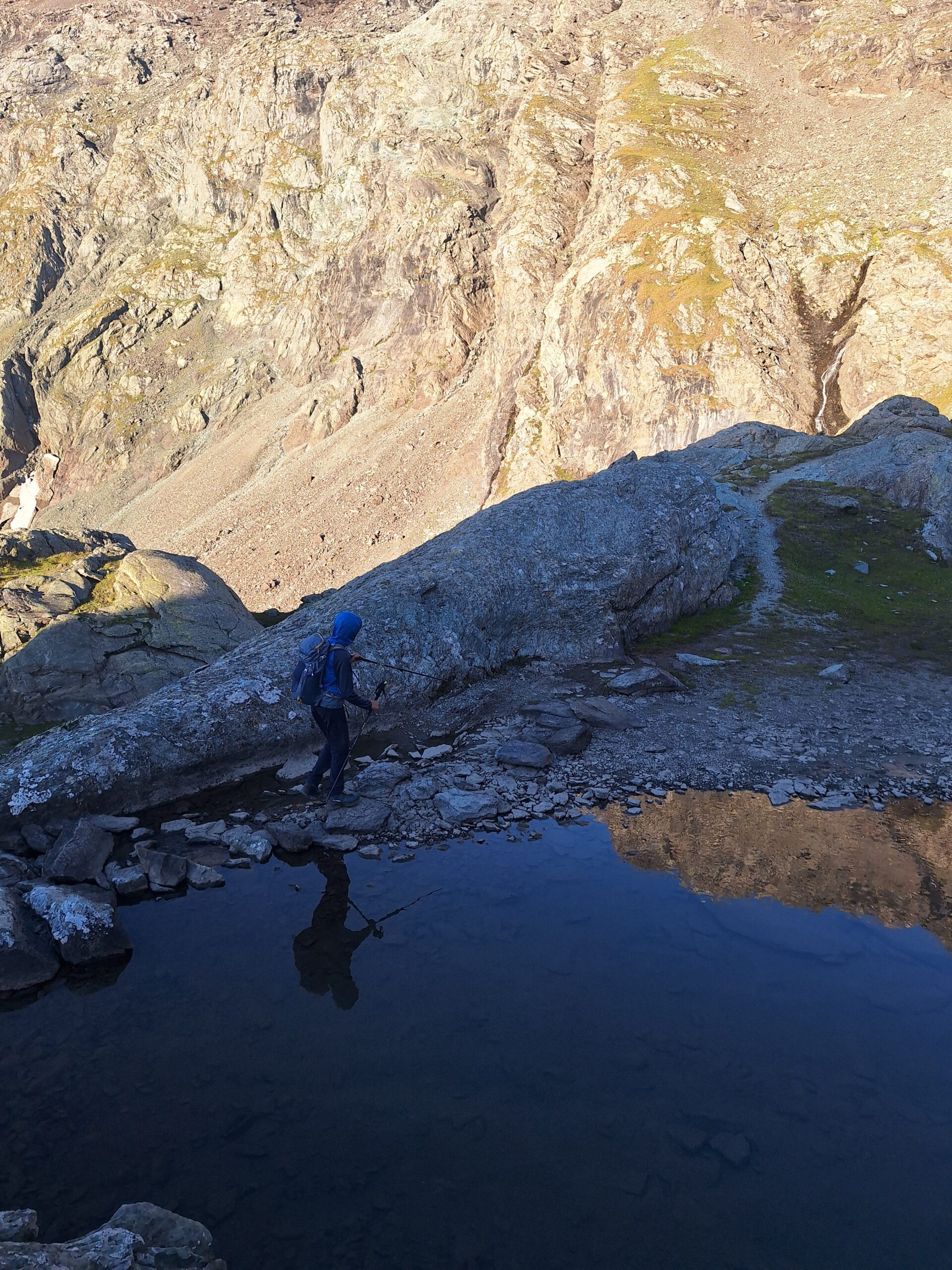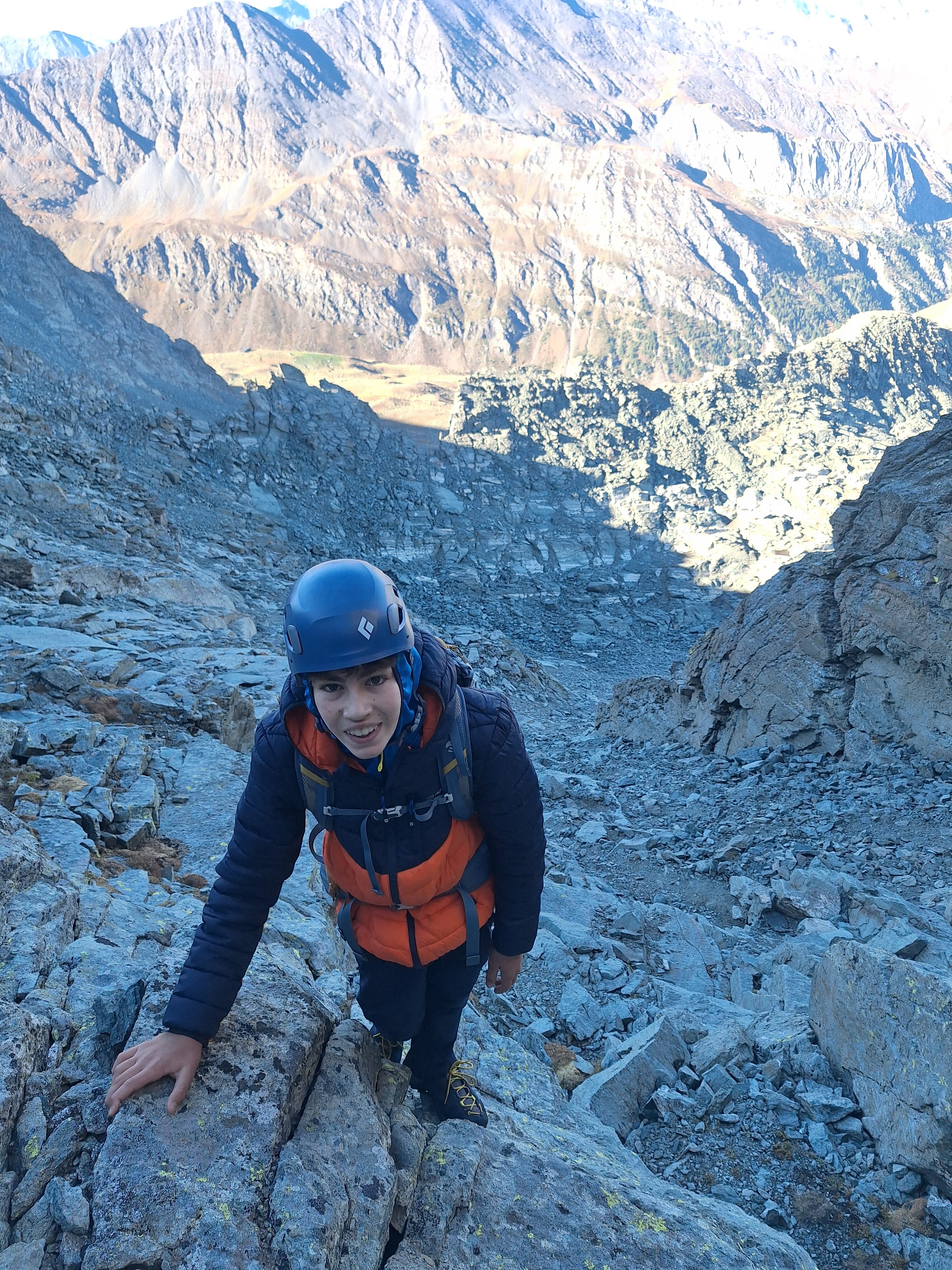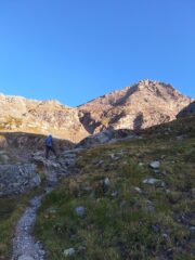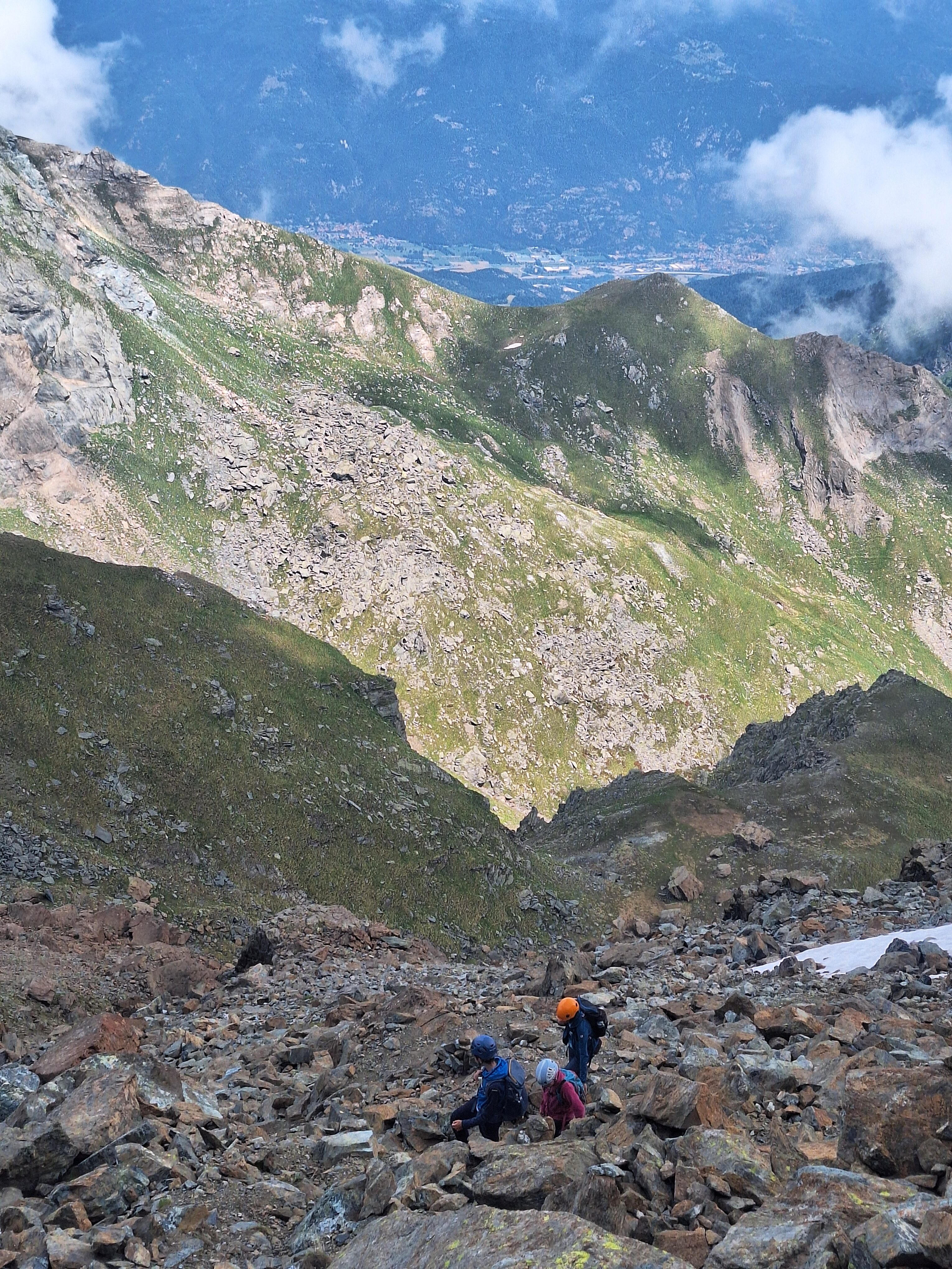 Sentierino ben visibile sino all'inizio della sezione piu` impegnativa, poi tenendosi sul lato destro del colatoio roccette solide e si e` un po` piu` riparati…