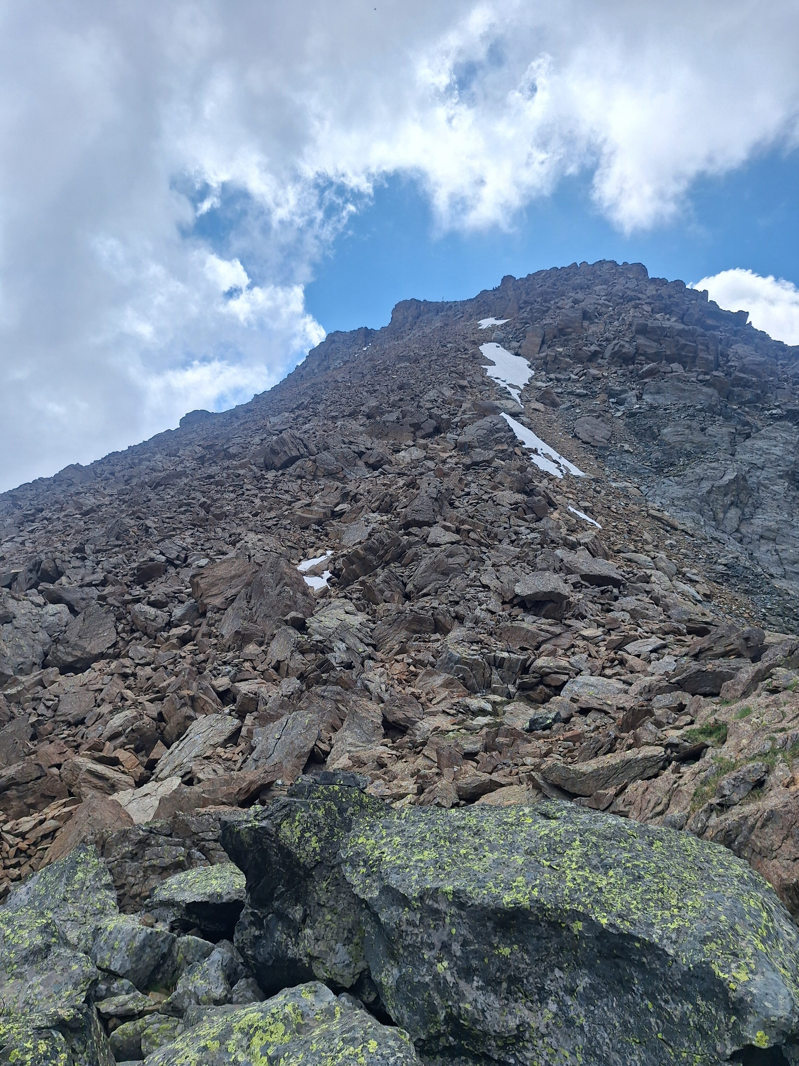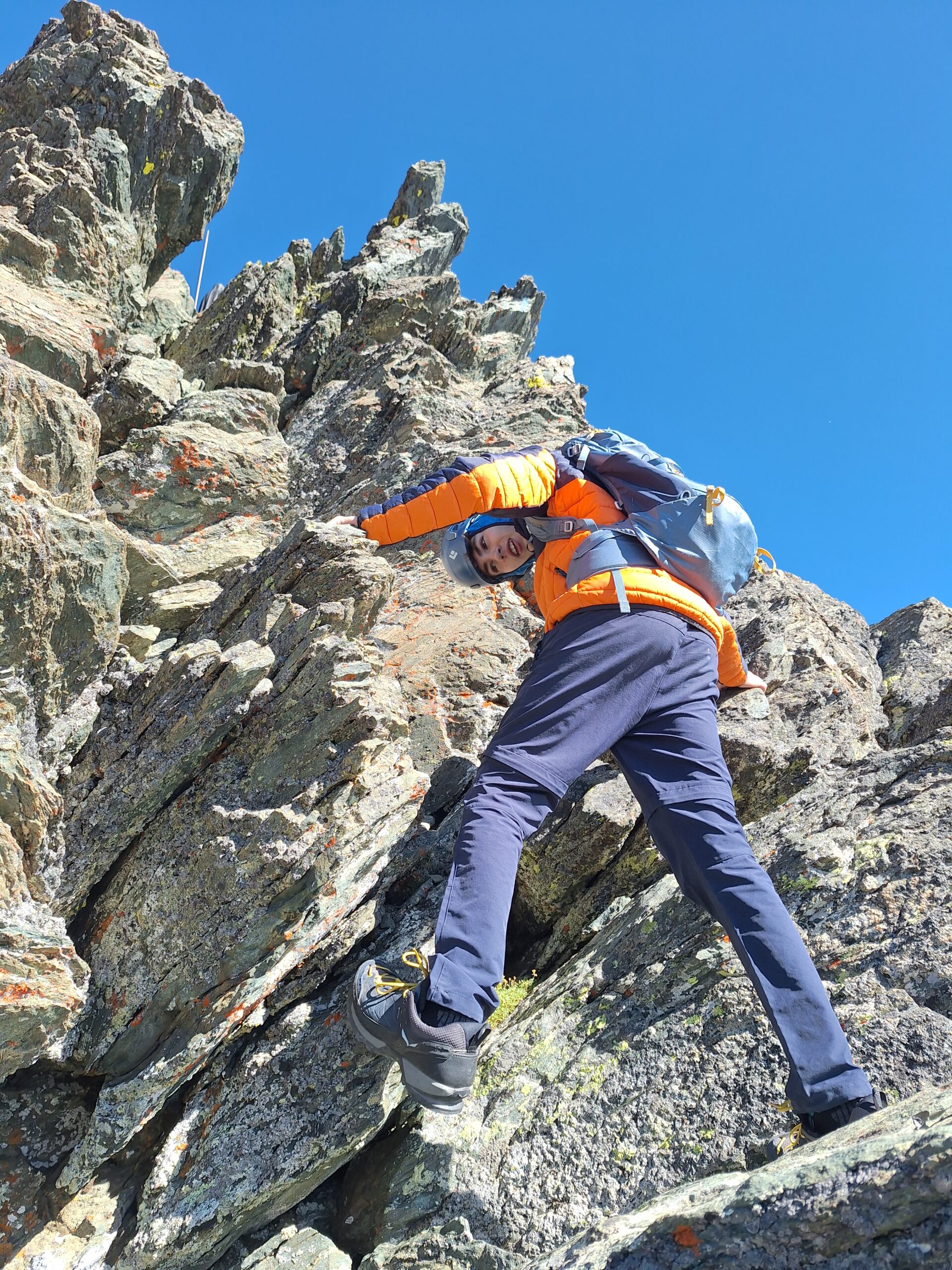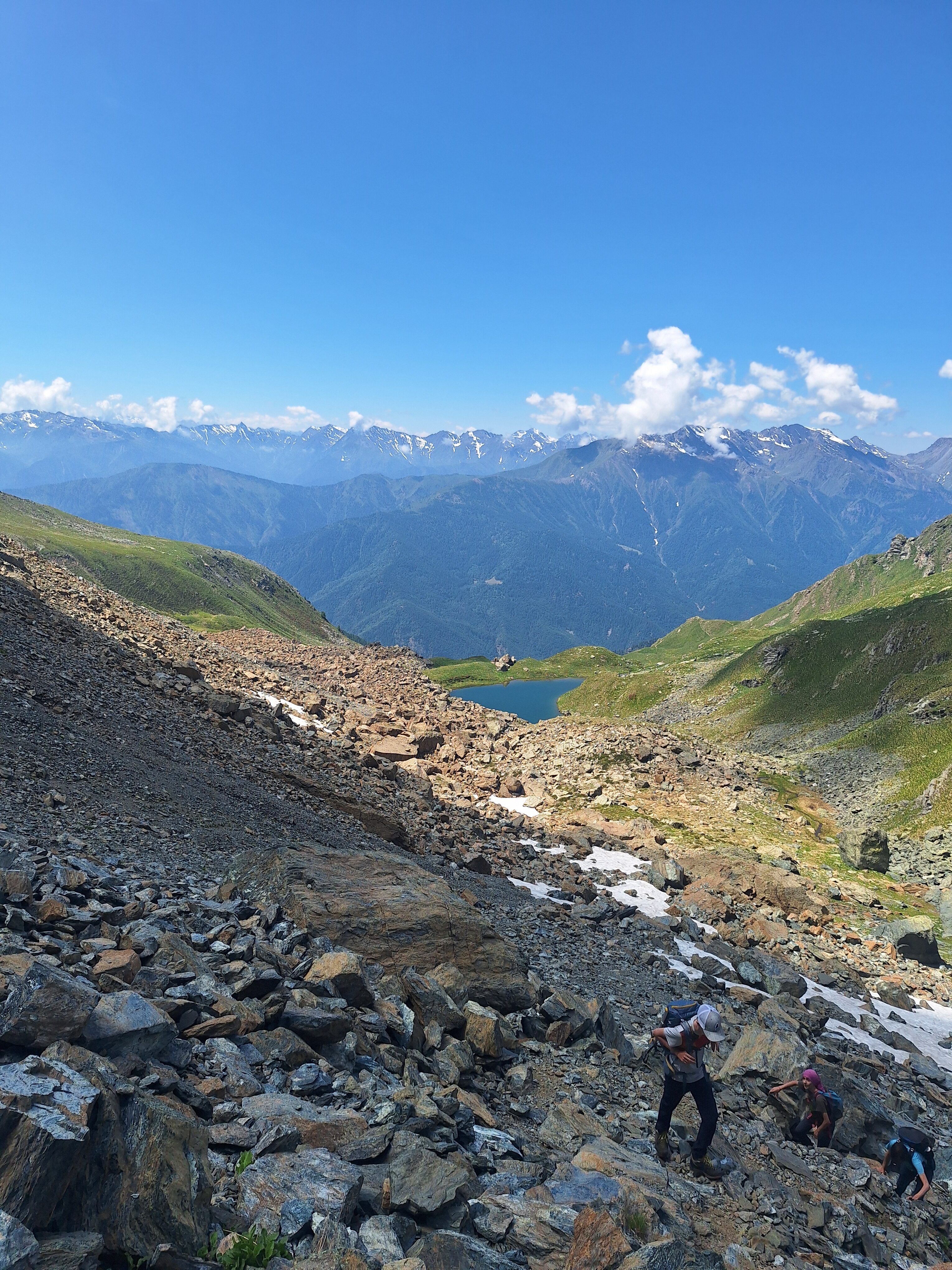 Sentierino ben visibile sino all'inizio della sezione piu` impegnativa, poi tenendosi sul lato destro del colatoio roccette solide e si e` un po` piu` riparati…
