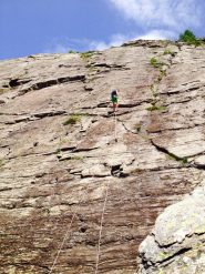 Nebbia bassa all'attacco della via fino quasi a metà parete. Schiarite al nostro arrivo in vetta. Piacevole visione sulla grignetta che spuntava dal mare di…