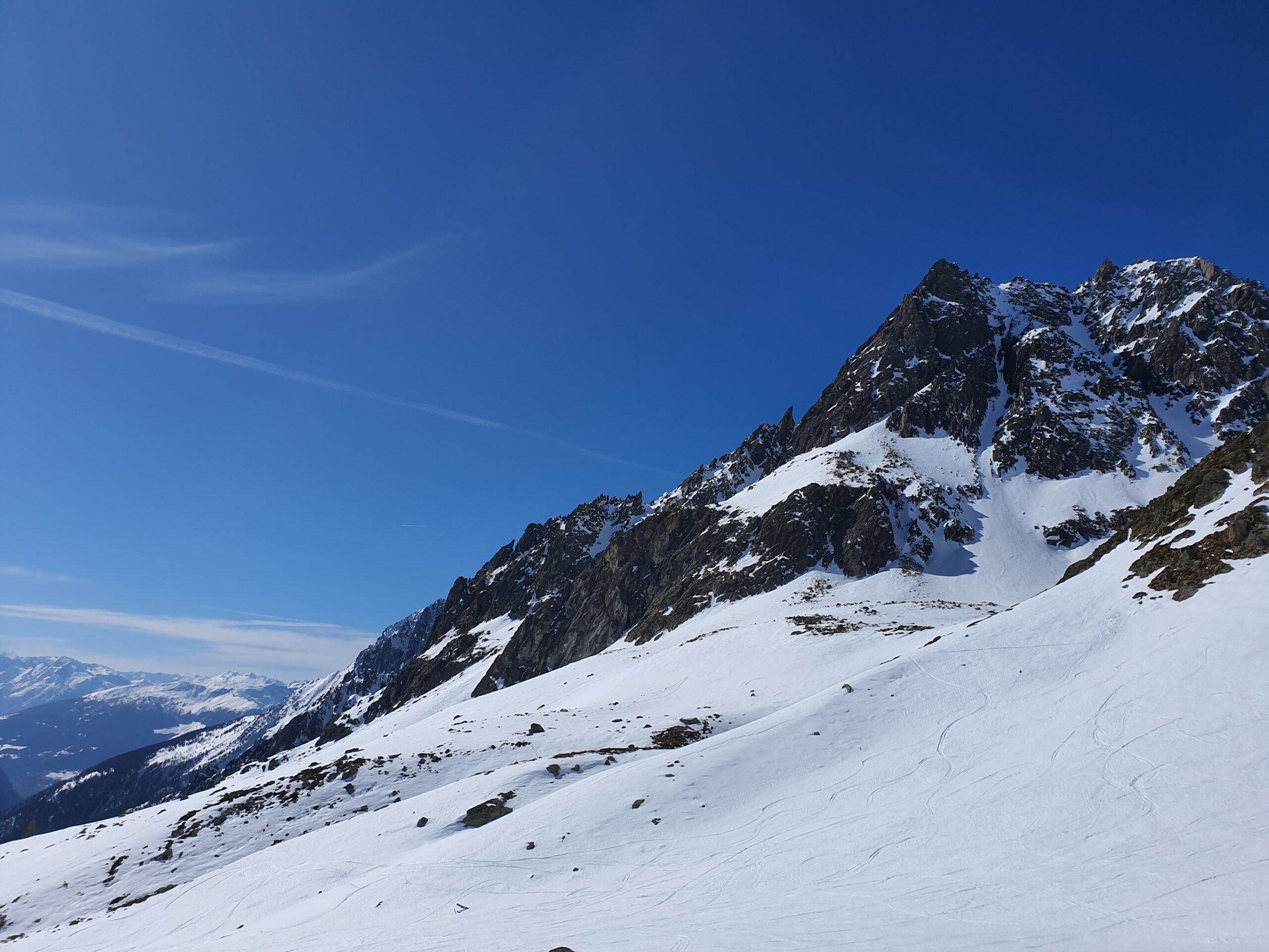 Al mattino anche abbastanza tardi, buon rigelo. Neve comunque non troppo scivolosa, si saliva bene. La discesa va divisa in tre parti: parte superiore sino…