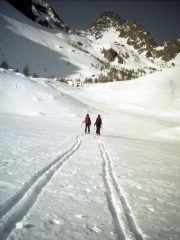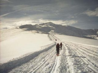 gita divertente, saliti dalla strada, causa scarsa neve sopra lo skilift, dalla borgata Soleglio Bue la neve cominciava ad essere marciotta, si attaccava alle pelli,…