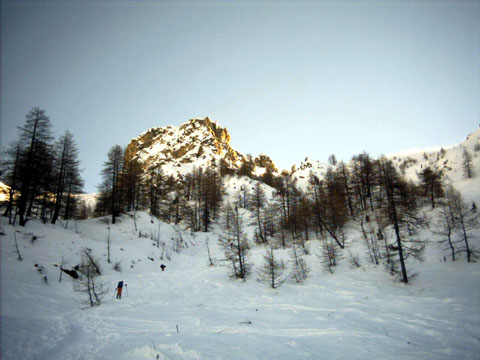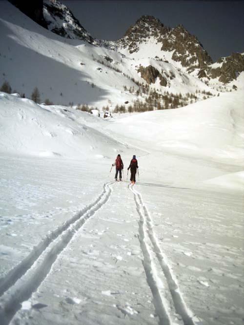 nella parte inferiore in salita la neve era già tendente al molle, sopra le grange Ussiera era ancora farina. al colle c'era molto vento da fondo…