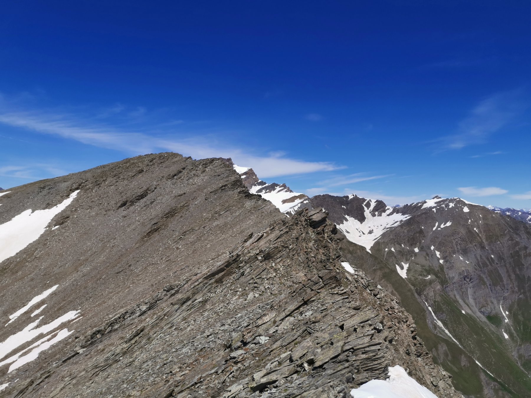 Bell'itinerario che permette di toccare due 3mila senza particolari fatiche aggiuntive e uno sviluppo abbastanza limitato circa 14Km, panorami estesi dalle vette, quasi tutto pulito…