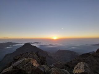 Saliti la sera prima con notte confortevole in tenda nei pressi del rifugio. Partenza 5.30, sempre presente il nevaio all'attacco dove sono utili i ramponi…