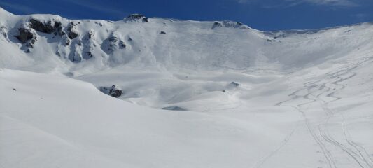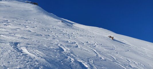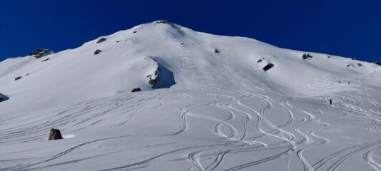 Saliti su ottima traccia,assenza di vento e giornata spaziale. Scesi diretti sulla est con ottima e tanta farina,nella parte mediana ancora ottima farina compattata. Parte finale nella…