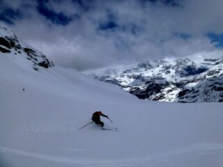 Si parte ancora sci ai piedi, itinerario da tracciare dopo la nevicata notturna. Pendii del Cornetto e di accesso al ghiacciaio da affrontare con cautela.…