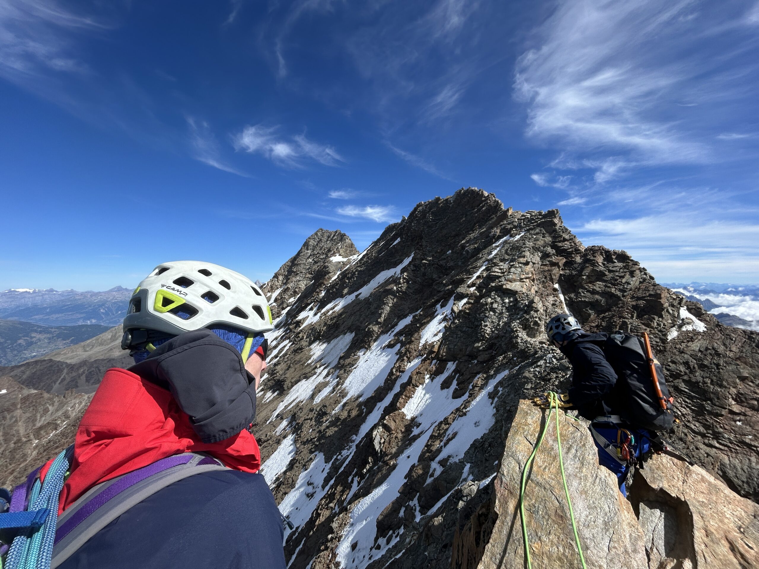 Cresta molto pulita, discesa ben segnata dagli ometti. Presenti dei nevai ma affrontabili con la sola picca. La cresta la si può percorrere in giornata…
