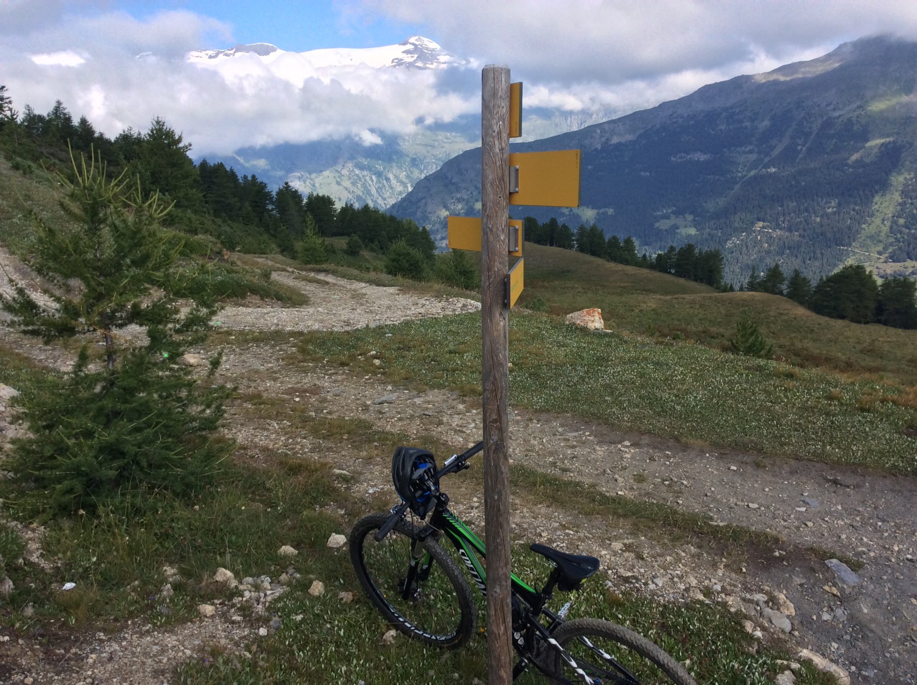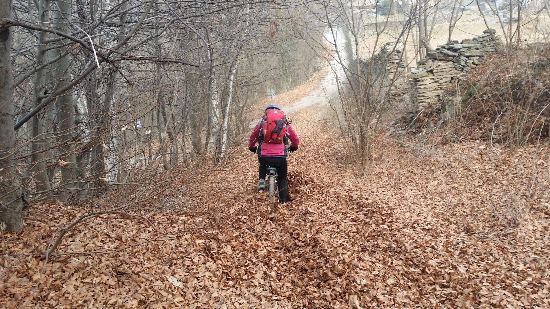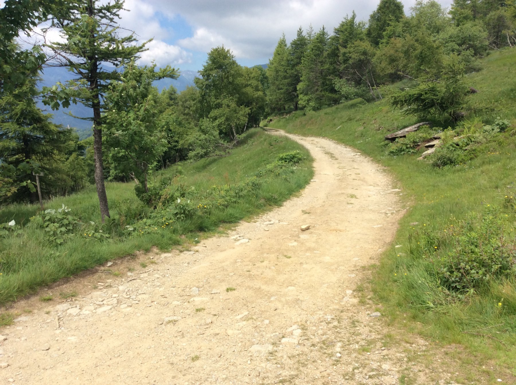 | nigando | tratto iniziale fuori dal bosco | nigando | bivio a sx fort la turra, a dx in discesa per il colle | nigando | in discesa | nigando | Colle Solliers