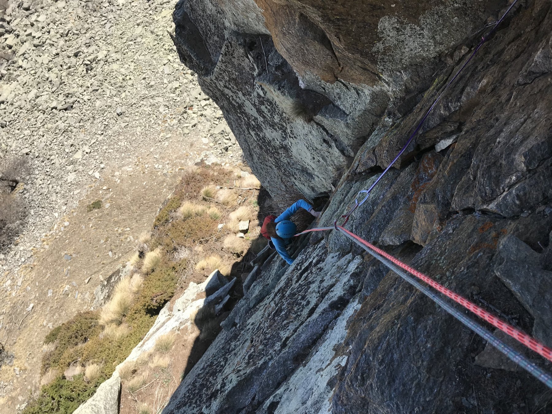 Grazie al lavoro di pulizia e riscoperta dell’itinerario! Via ben scalabile che richiede padronanza della scalata su terreno poco o per nulla attrezzato. Ultimo tiro…
