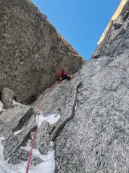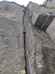 La via è un piccolo gioiellino di scalata in fessura, solo 4 tiri ma tutti di fessura con tanti incastri. Attacco tra impressioni di settembre…