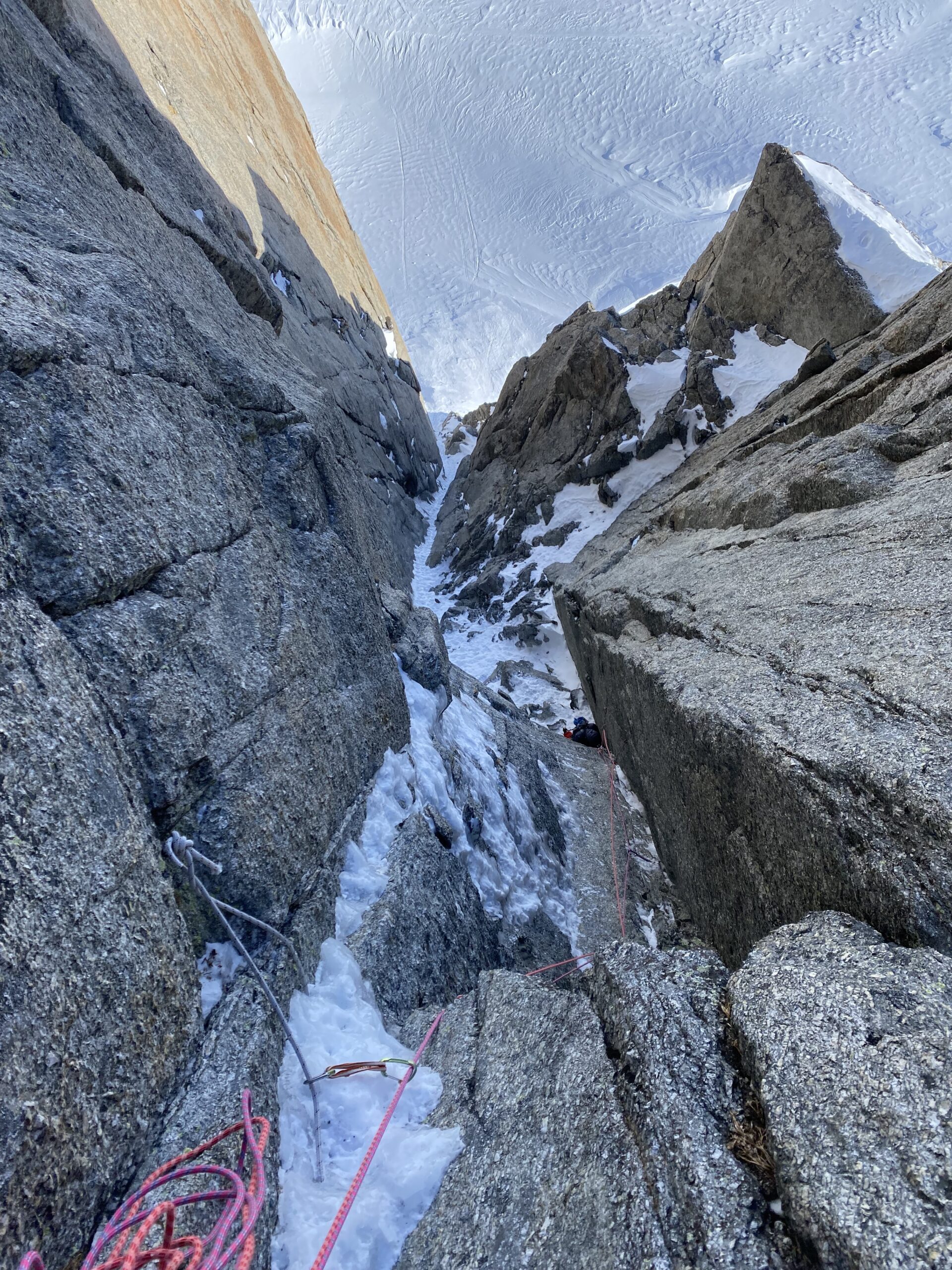 Bella ed estetica goulotte, oggi giornata molto fredda con vento forte e gelido. All’attacco una cordata di francesi che rinunciava proprio per il vento. Fatto…