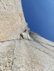 Bella via piú che altro per l’ambiente. Ultimo tiro trovato abbastanza facile e in linea col resto della via. Qualche friend piccolo utile per il…