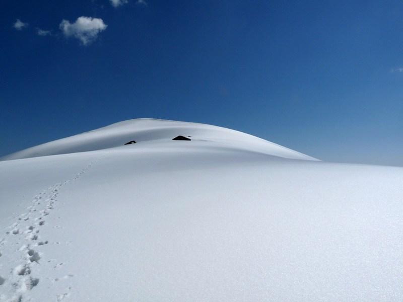 Bella cresta, breve ma abbastanza ripida e aerea. Un po' di ghiaccio nel brevissimo canalino finale tra le roccette.