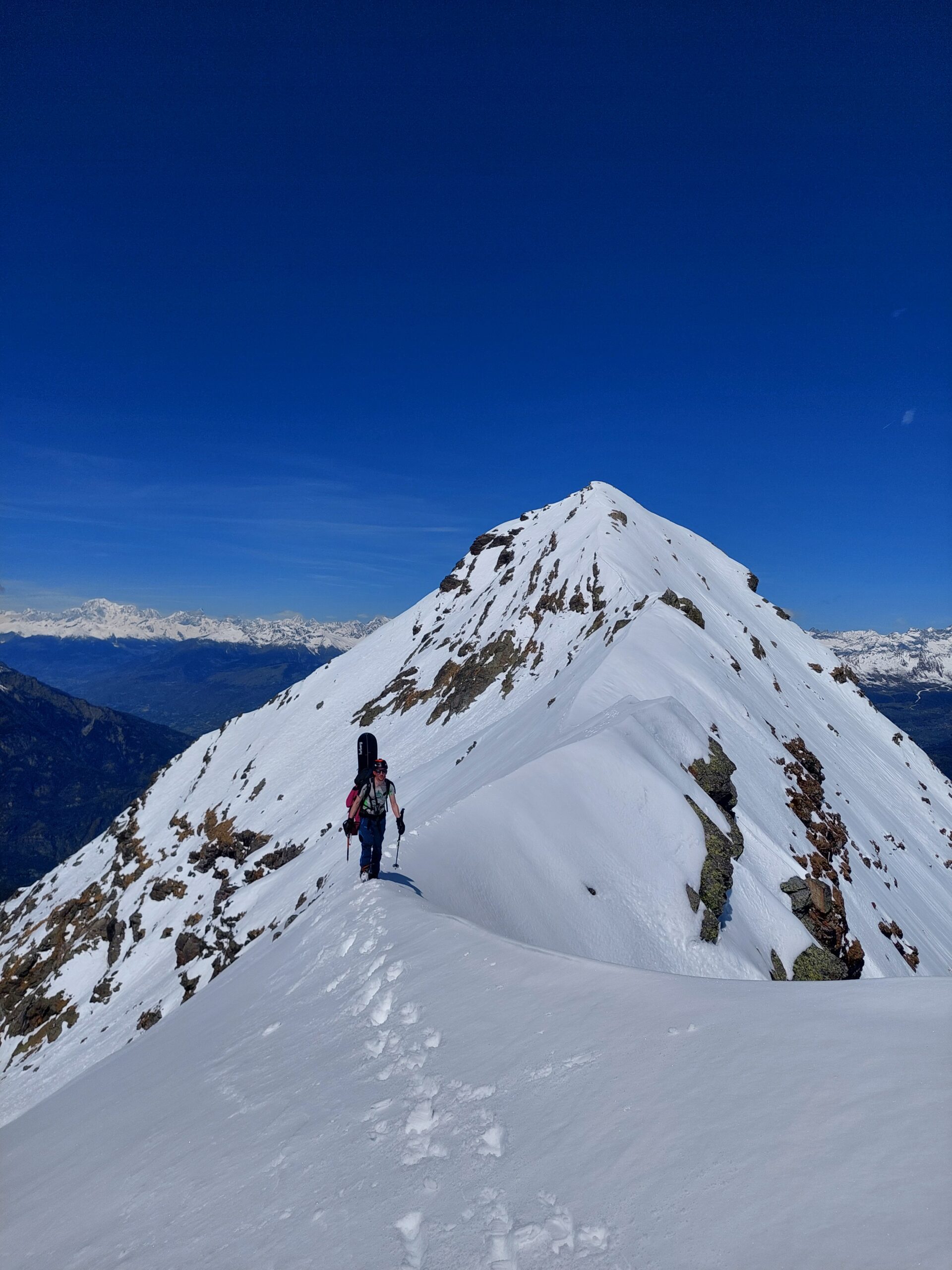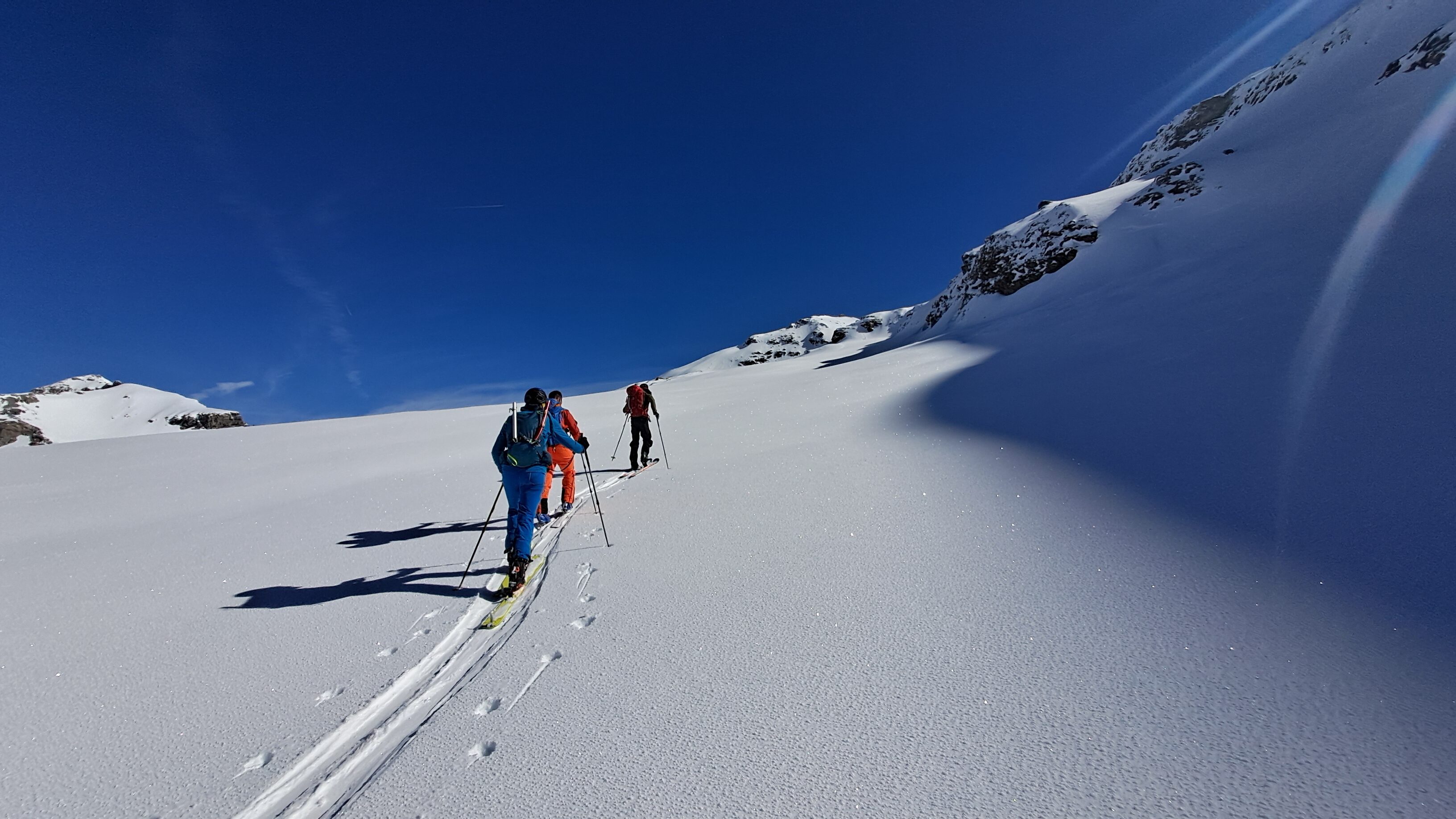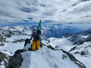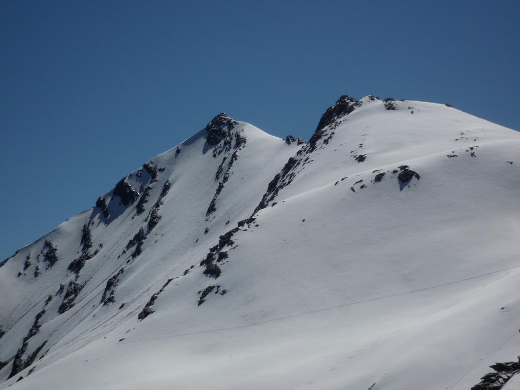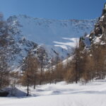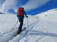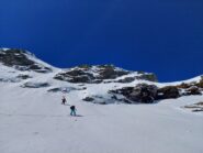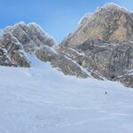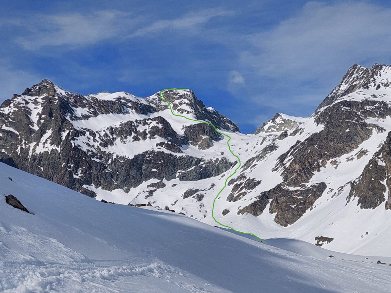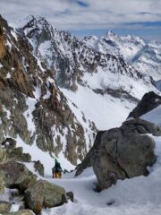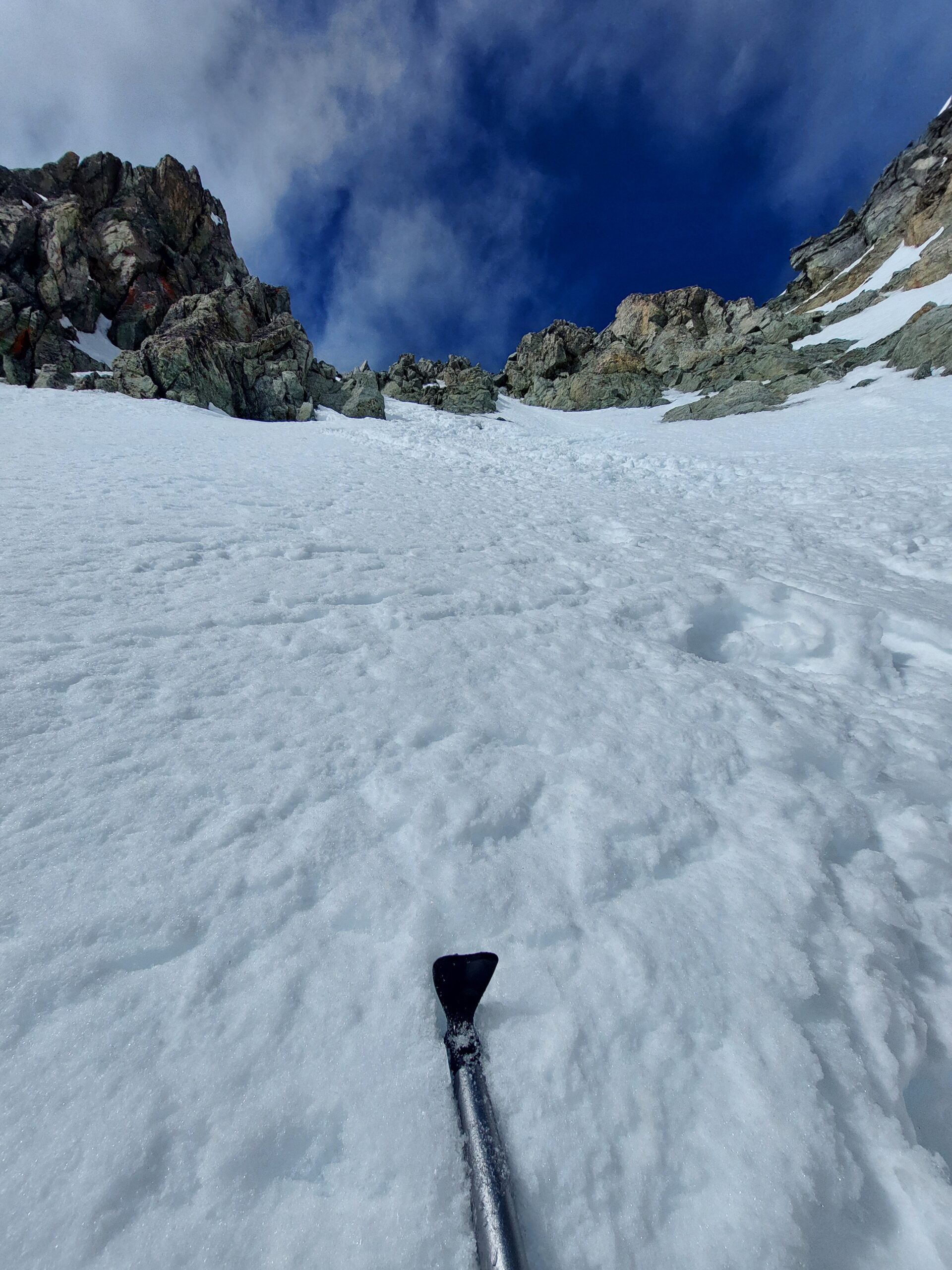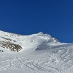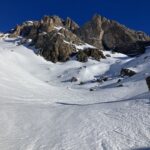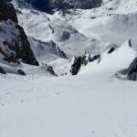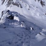 A quota 3100 circa, in corrispondenza del colletto, virare decisamente a sinistra verso le rocce, traverso apparentemente esposto ma con la neve di oggi si…