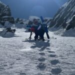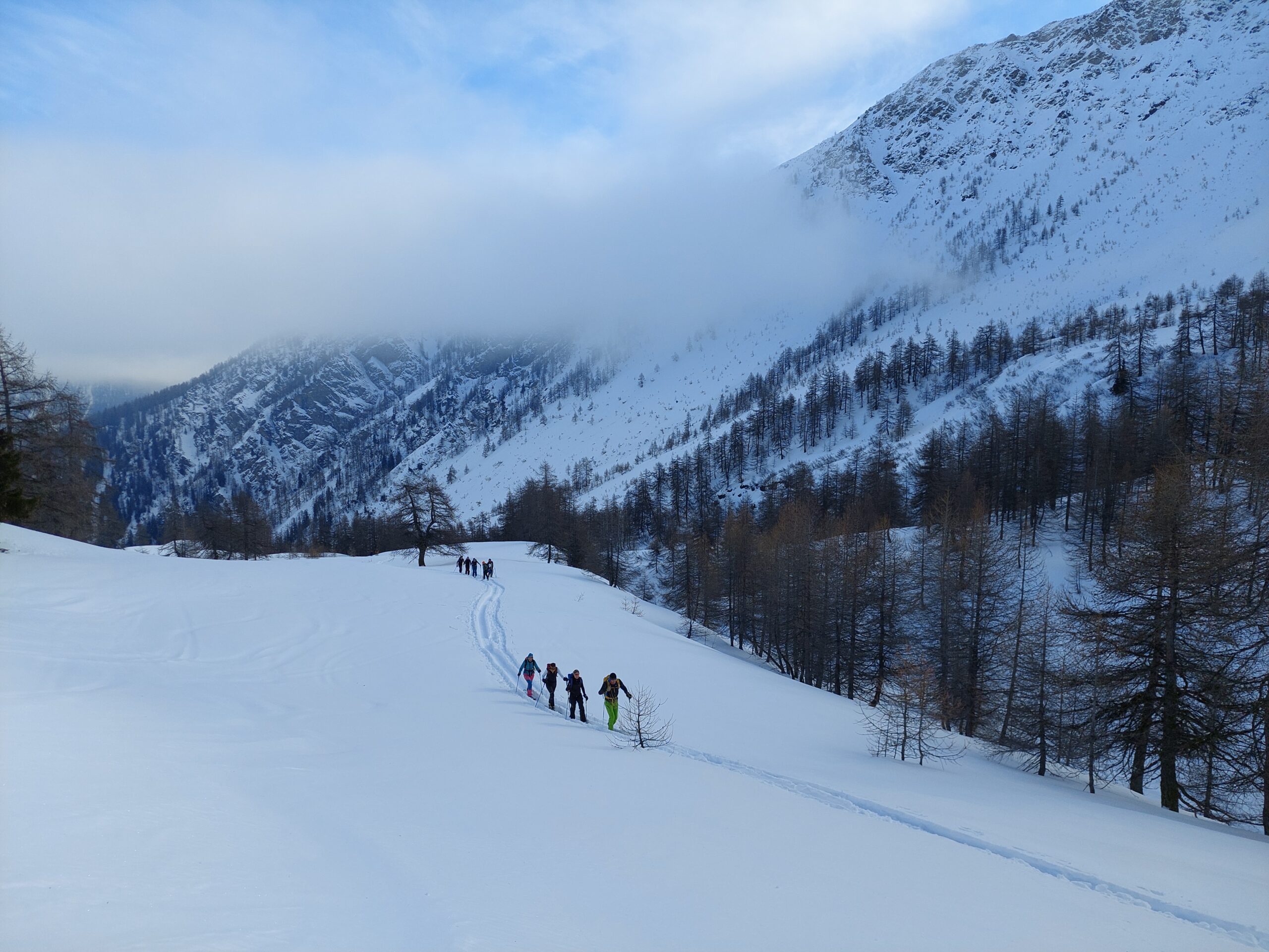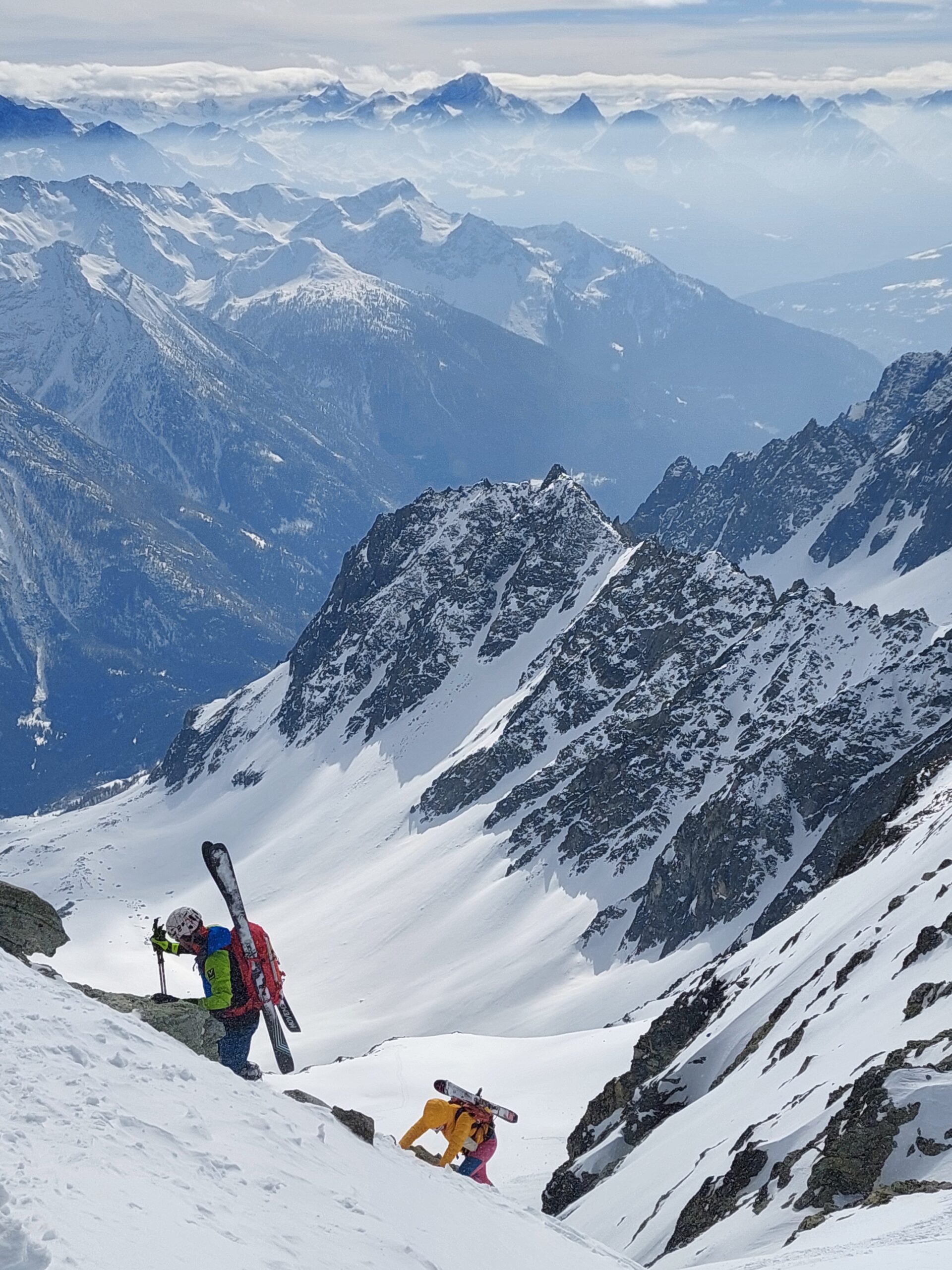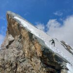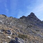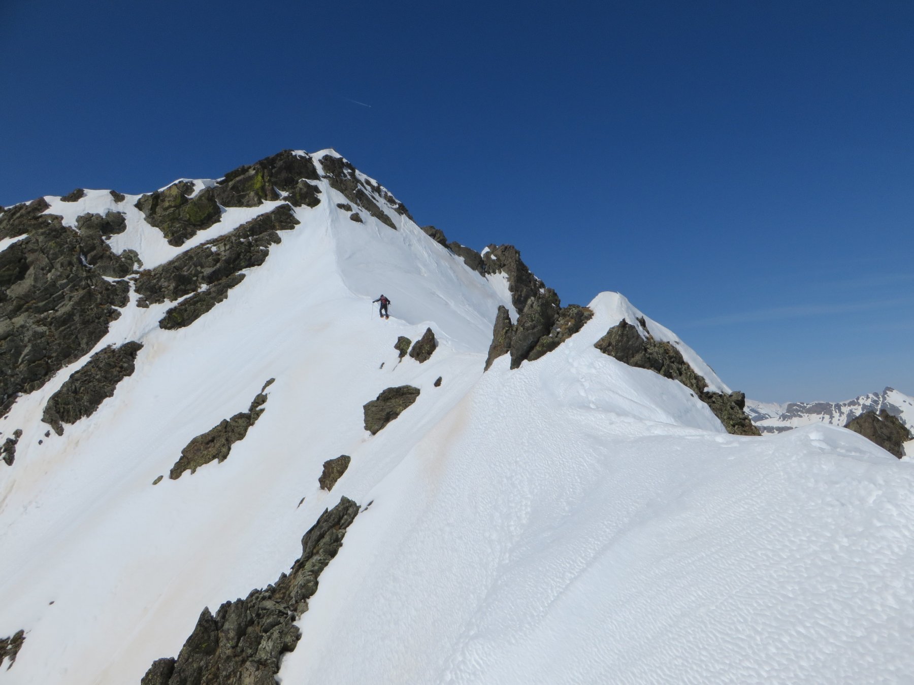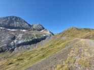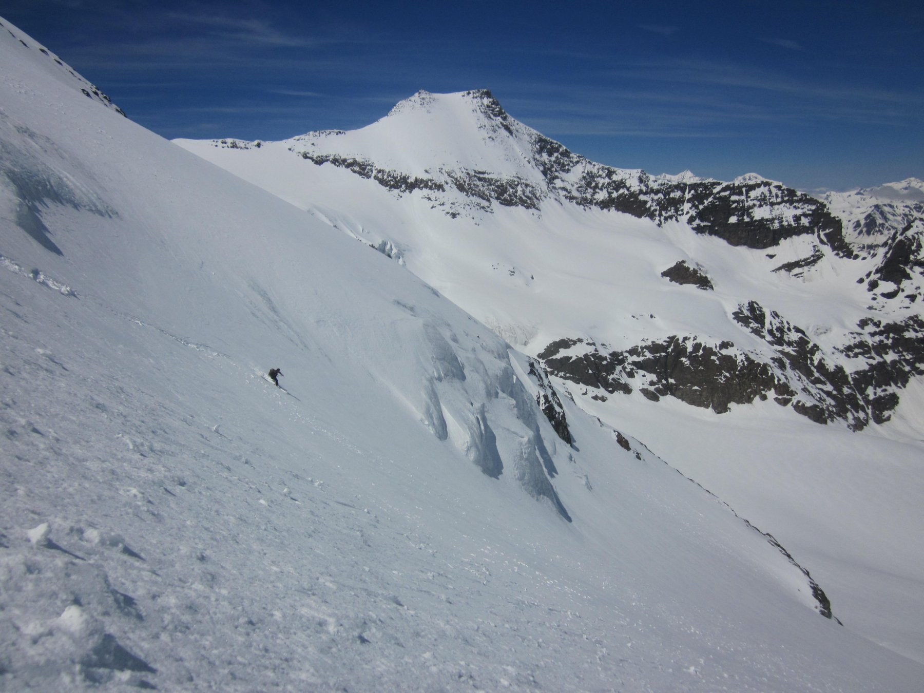 A quota 3100 circa, in corrispondenza del colletto, virare decisamente a sinistra verso le rocce, traverso apparentemente esposto ma con la neve di oggi si…