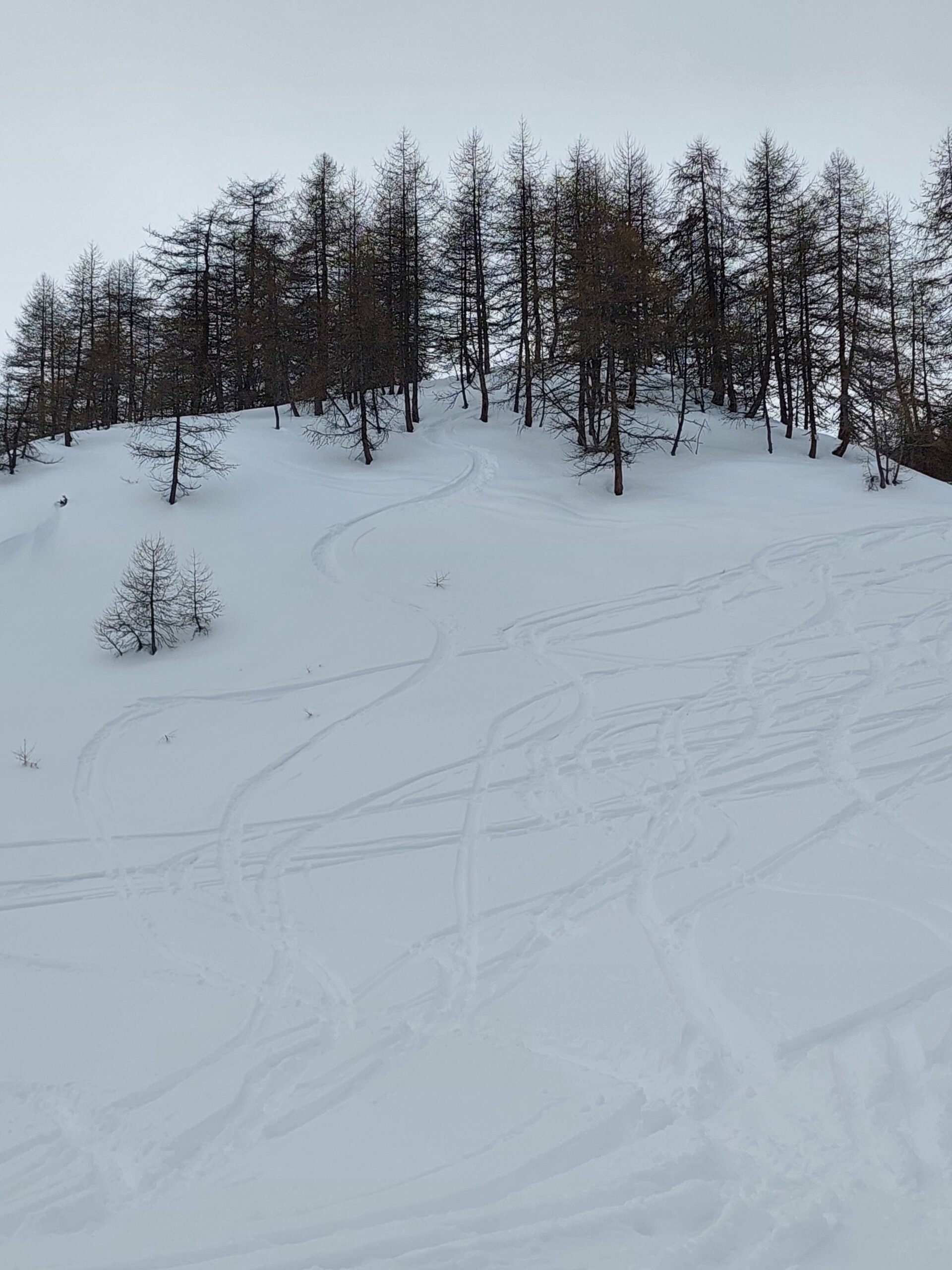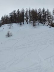 Neve OK, doveva aver già preso un po' di sole ieri e il vento nella notte ha lavorato. Belle curve in alto ma meglio non…