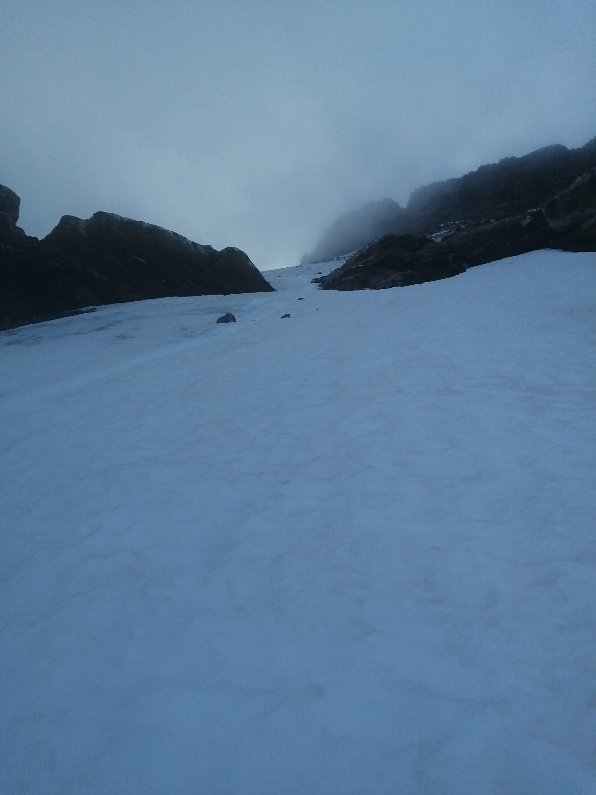 | obelix80 | La sosta alla fine di L3 non è questa, ma bisogna procedere a sinistra sulla cengia, fin sotto l'ultima paretina di L4. | obelix80 | Appare finalmente all'ultimo la croce di vetta | obelix80 | salendo dalla sud ovest | obelix80 | quota 3040, parte finale della cresta sud ovest | obelix80 | arrivando al pianetto a quota 2900, sulla sinistra la spalla che porta a quota 3040 | obelix80 | dal colle di Thures, la cresta da percorrere | obelix80 | Ramière salendo al colle di Thures | obelix80 | Parte alta sotto il Colle X. Al centro in basso lo spuntone che si aggira a destra e non a sinistra. | obelix80 | Parte finale del canale da cui sale la normale | obelix80 | Seconda calata sul diedro (parte di salita più impegnativa) fino al terrazzino dopo la corda fissa | obelix80 | Prima calata da un massone in cresta, superando il quarto spit, si arriva con un paio di metri di corda residui al terzo spit sopra il diedro. | obelix80 | Ultimo canalino prima del bacino Ferrand per salire al ghiacciaio soprastante | obelix80 | Canalino visto dall'alto con pietra camminante | obelix80 | Ghiacciaio Ferrand dalla cima del Niblè | obelix80 | Parte alta che sta diventando Ghiacciaio Nero