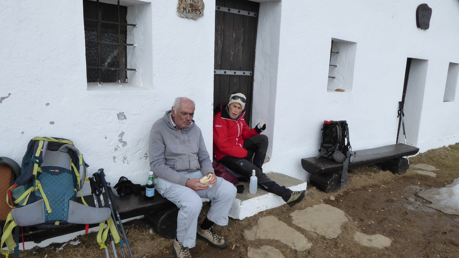 | obione | SENIOR a Cima Mares 1654 m. | obione | San Bernardo da Cima Mares | obione | Discesa a San Bernardo | obione | Le GLOBAL a San Bernardo 1540 m. | obione | Ristoro dentro il rifugio di S. Bernardo | obione | Mitici Agostino e Cleglia