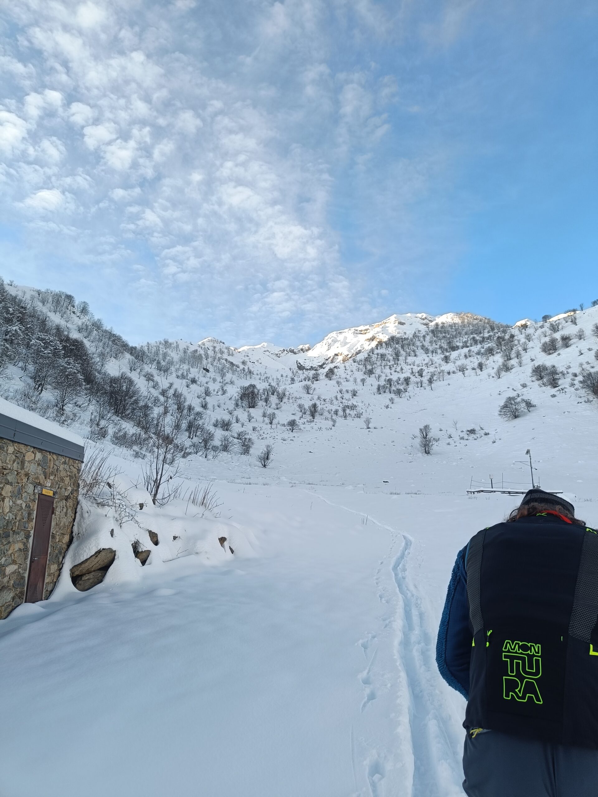 Si parte sci ai piedi al parcheggio, circa 30 cm di neve senza fondo sotto. Dal pianoro con la fontana inizia il fondo e si…