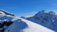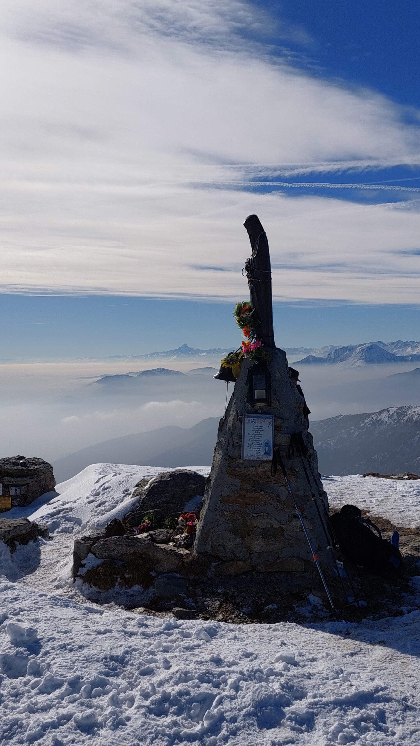La neve dal colletto e poi sulla cresta che porta in vetta cambiano repentinamente il paesaggio. Questo ultimo tratto ricorda che siamo in inverno... prima…