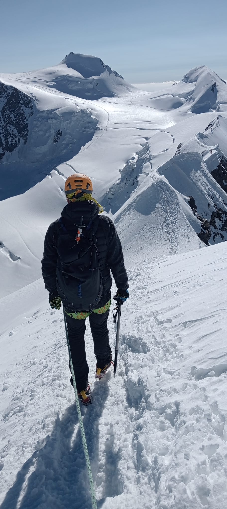 Percorsa in andata e ritorno dalla normale italiana della Dufour. Cima panoramica. Cresta finale su neve ben tracciata ma a tratti un po' esile e…
