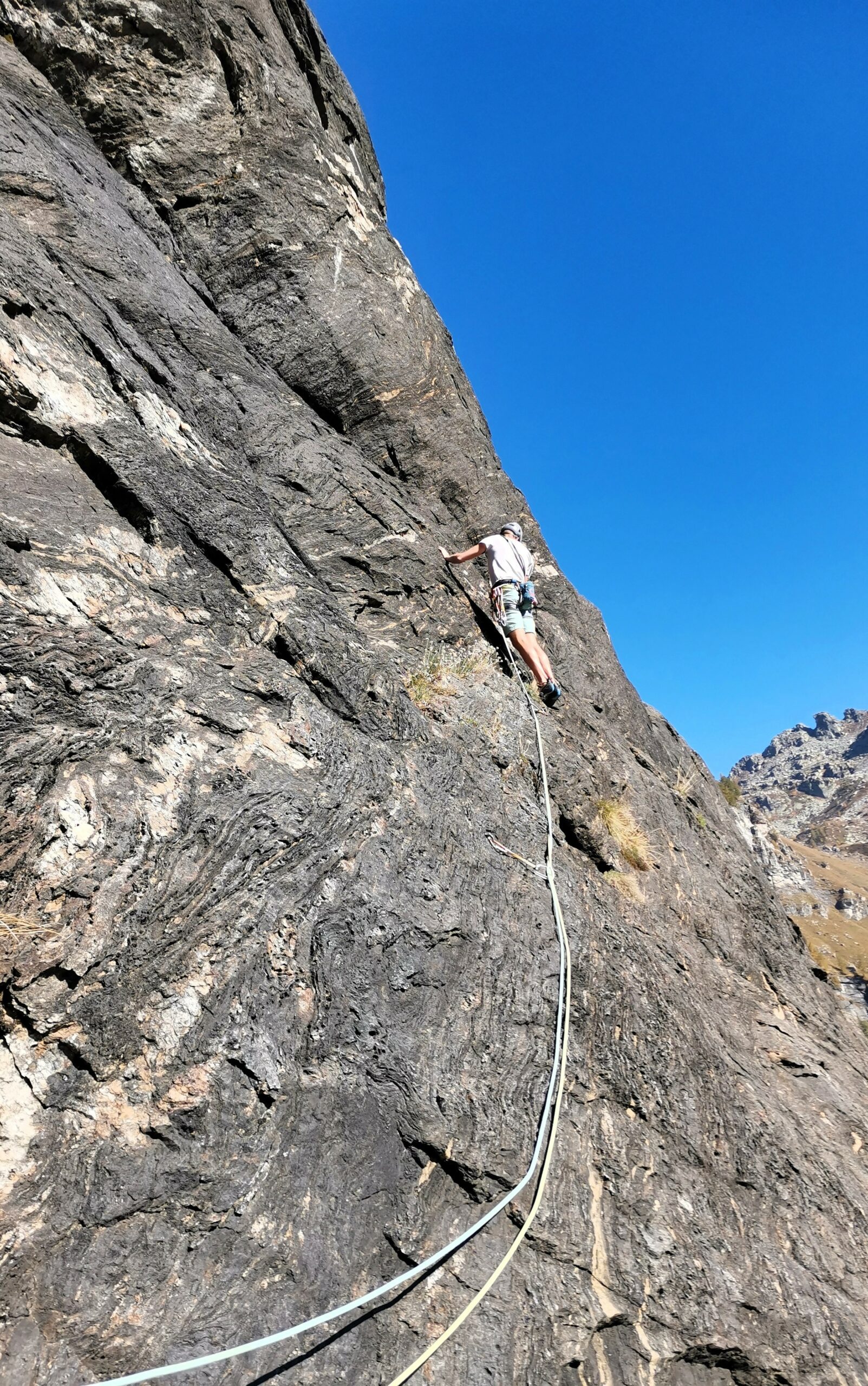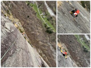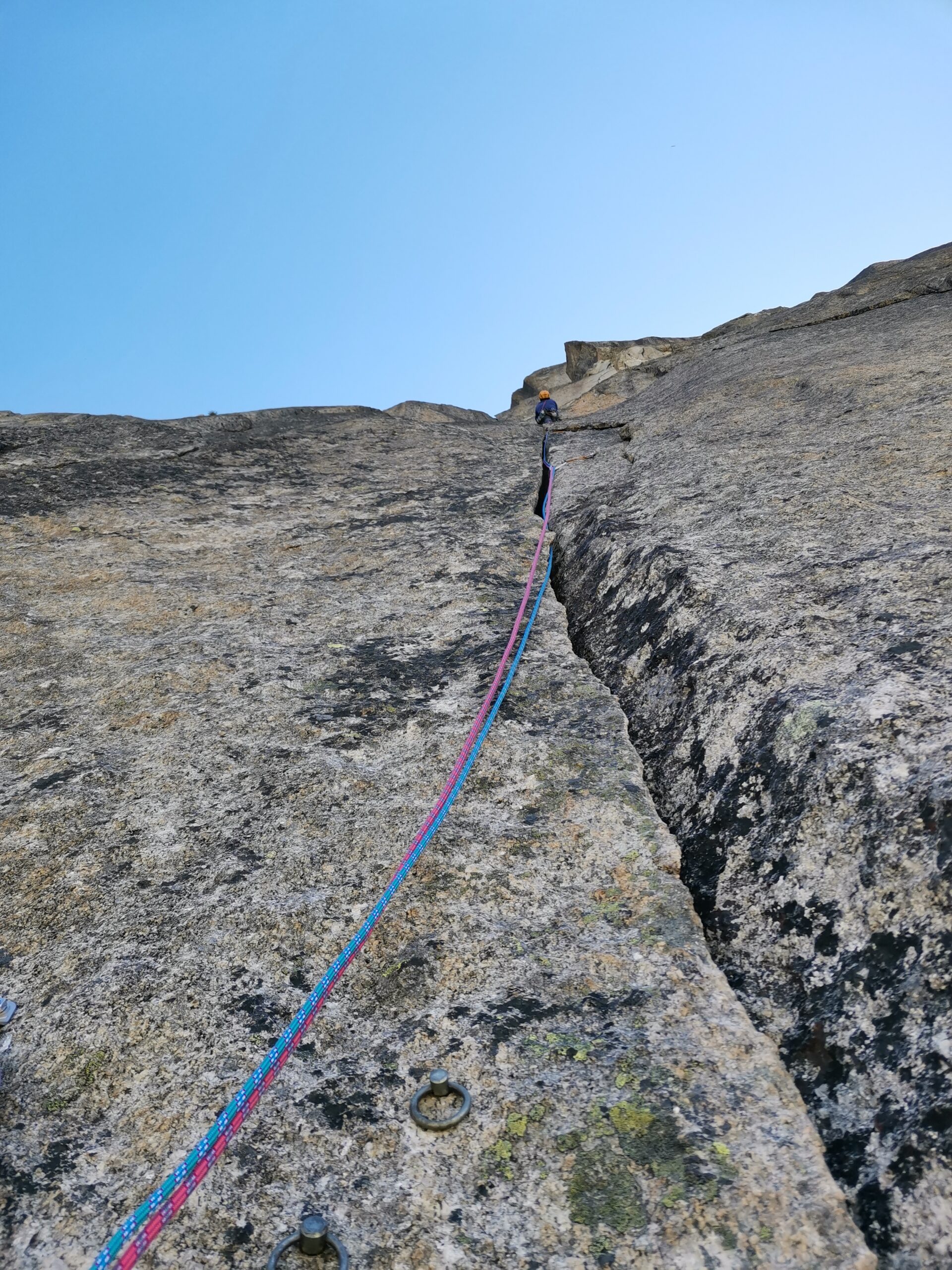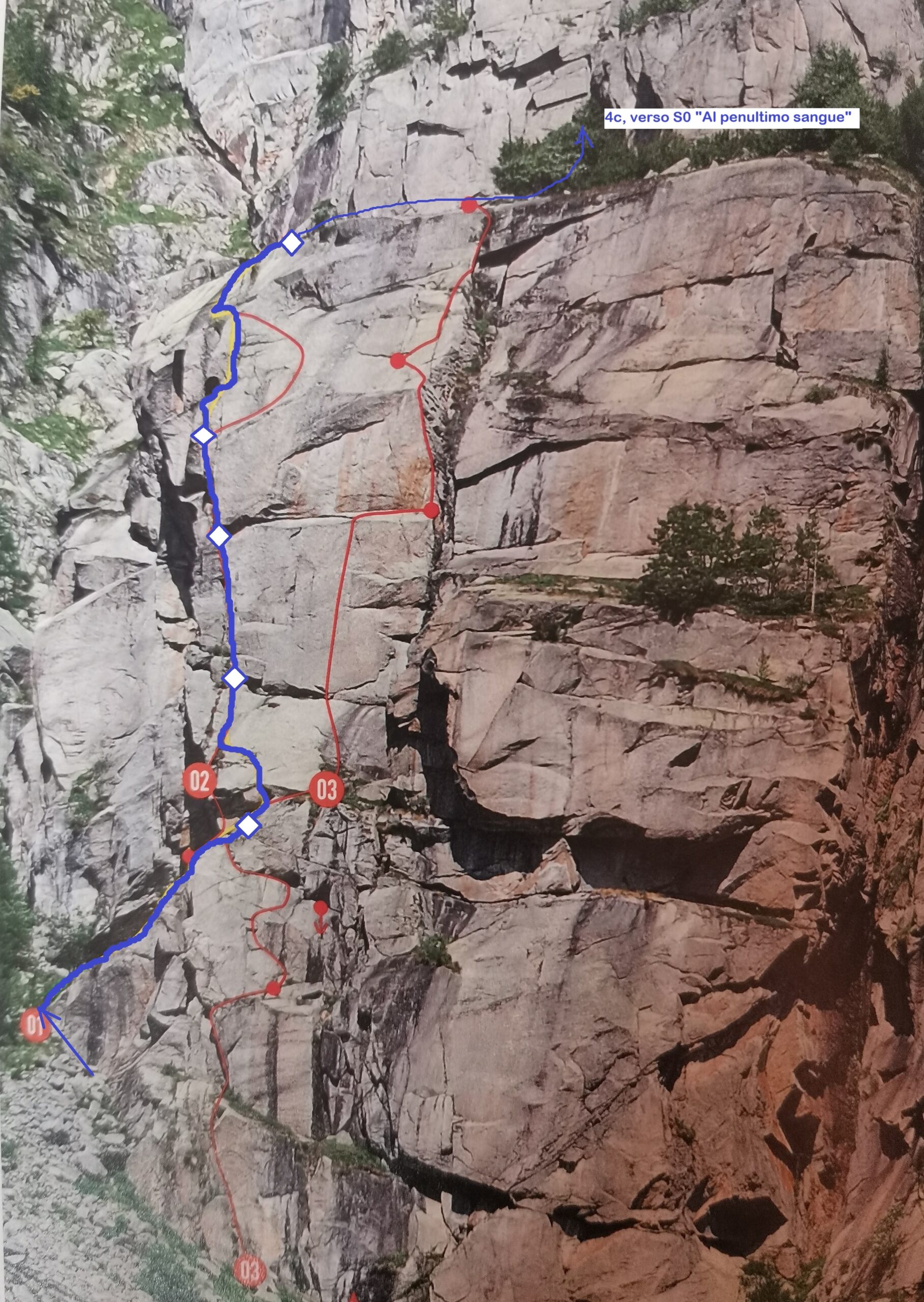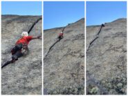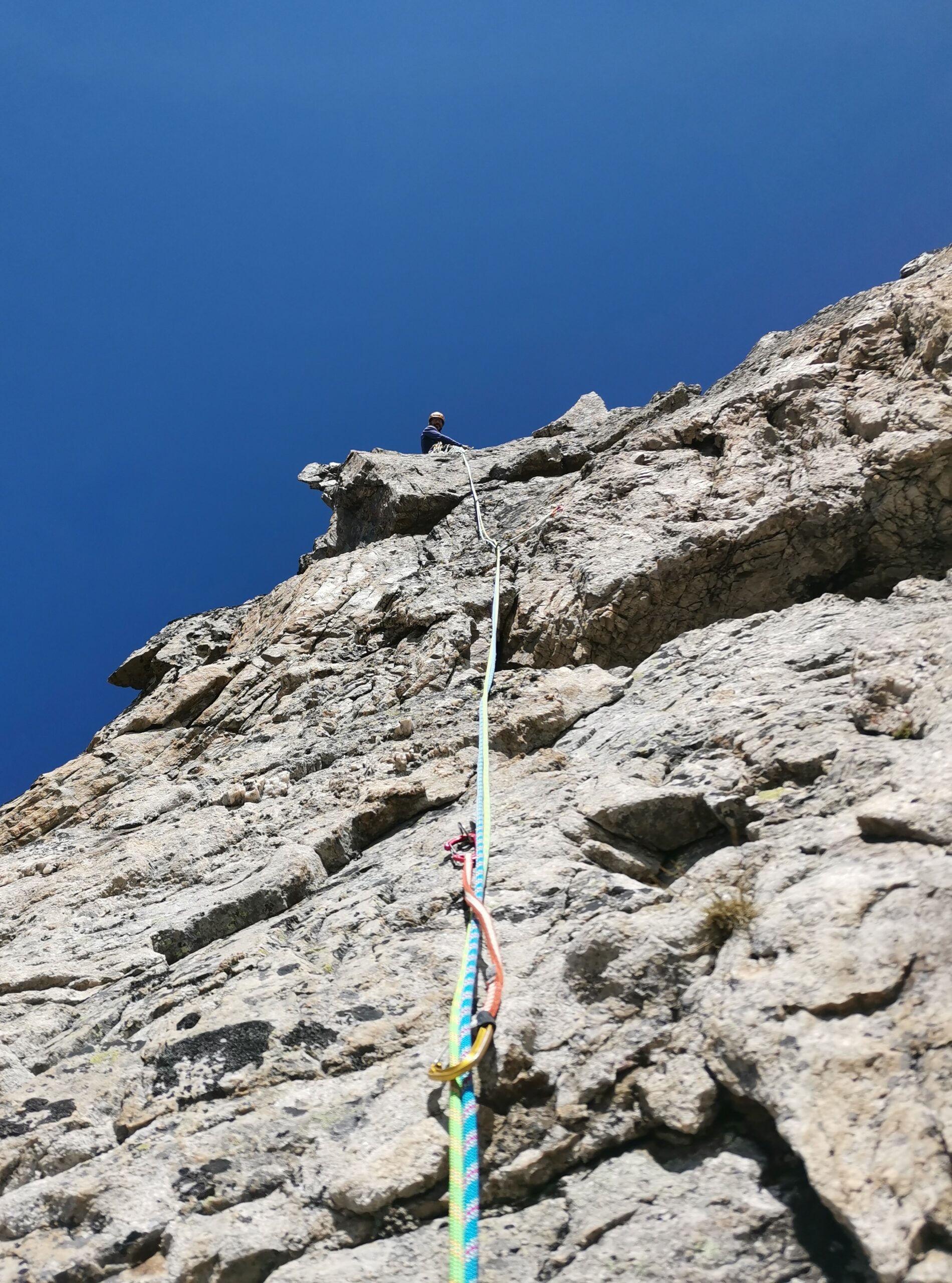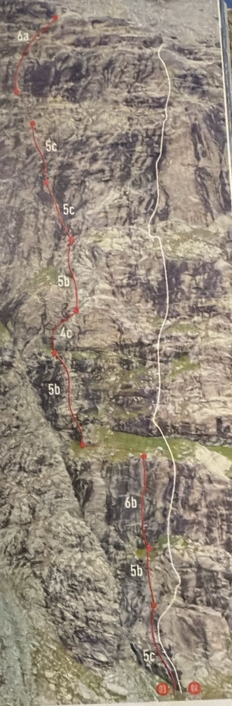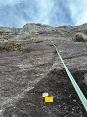 | ospite | Sostituzione | ospite | | ospite | Bellissimo L3 | ospite | Placca L1 | ospite | ultimo tirello per guadagnare la seconda cengia | ospite | L4, bellissima e faticosa | ospite | | ospite | traccia in blu | ospite | | ospite | Arrivo in sosta e prendo lo scalpo al tiro | ospite | Parto dalla sosta e il tiro mi fa lo scalpo | ospite | | ospite | | ospite | La conca sotto il biv. Tre Pizzi | ospite | Linea di salita