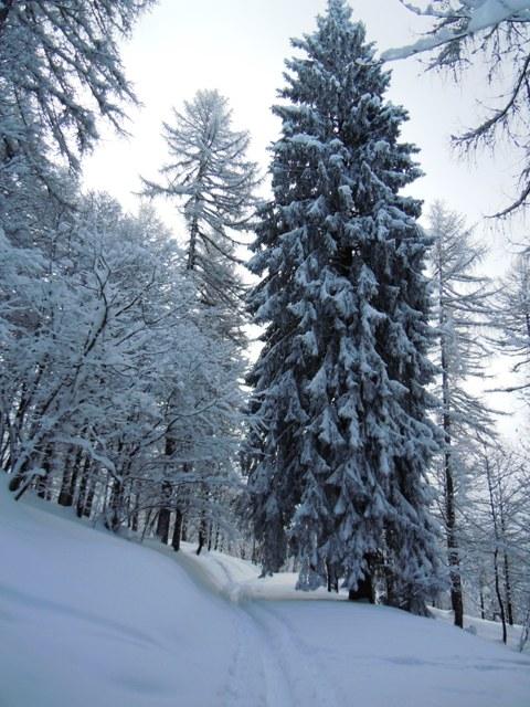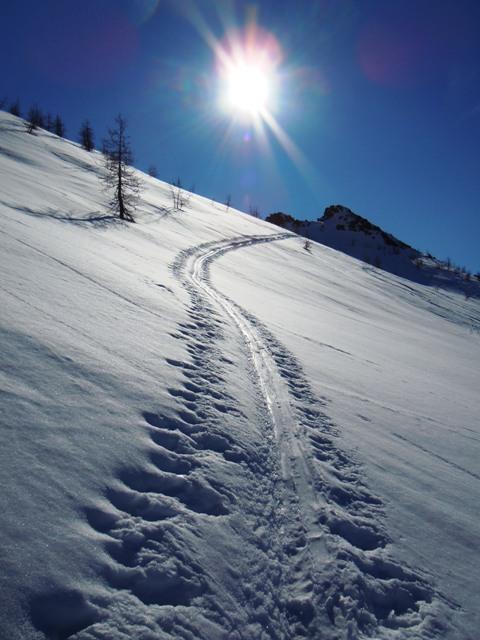 | otzi | Appena fuori del lariceto | otzi | Verso il bivio con l'enchiausa | otzi | Panorami | otzi | Canale centrale | otzi | Panorama verso il Ruissas