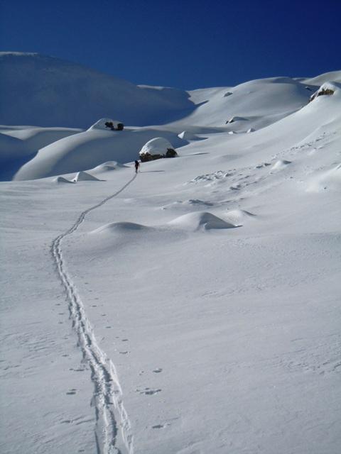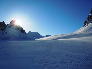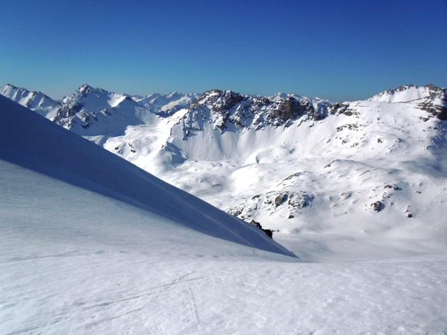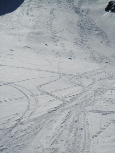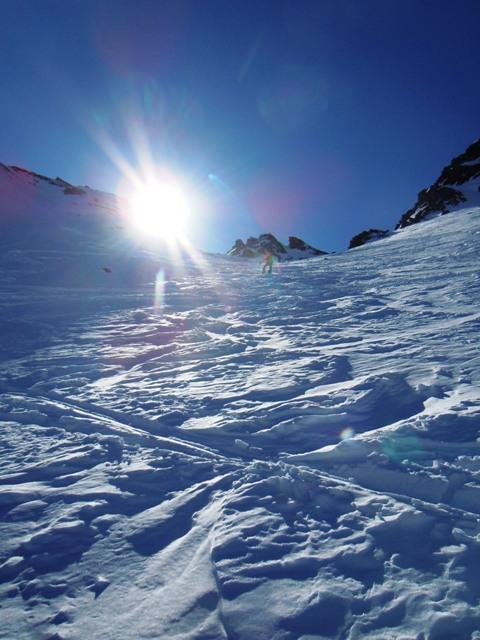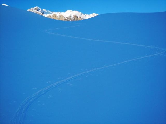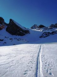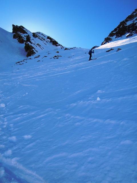 | otzi | Colletto a 2620 | otzi | Base del canale all'alba | otzi | Parte bassa | otzi | Sopra la strettoia | otzi | Panorama sulla Meja | otzi | Appena fuori del lariceto | otzi | Verso il bivio con l'enchiausa | otzi | Panorami | otzi | Canale centrale | otzi | Panorama verso il Ruissas | otzi | | otzi | A 3/4 del canale finale | otzi | Quasi sul colle | otzi | Discesa parte alta | otzi |